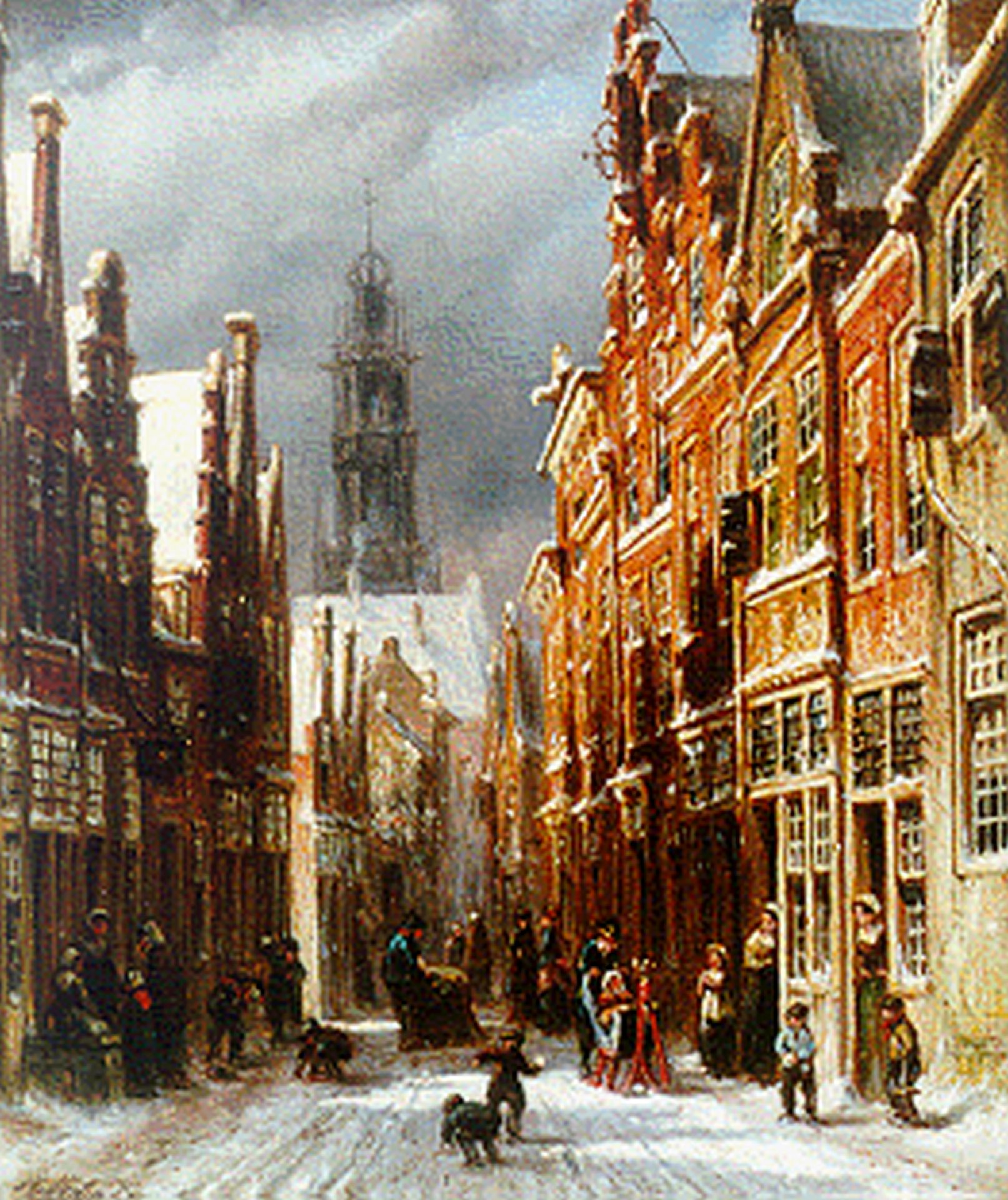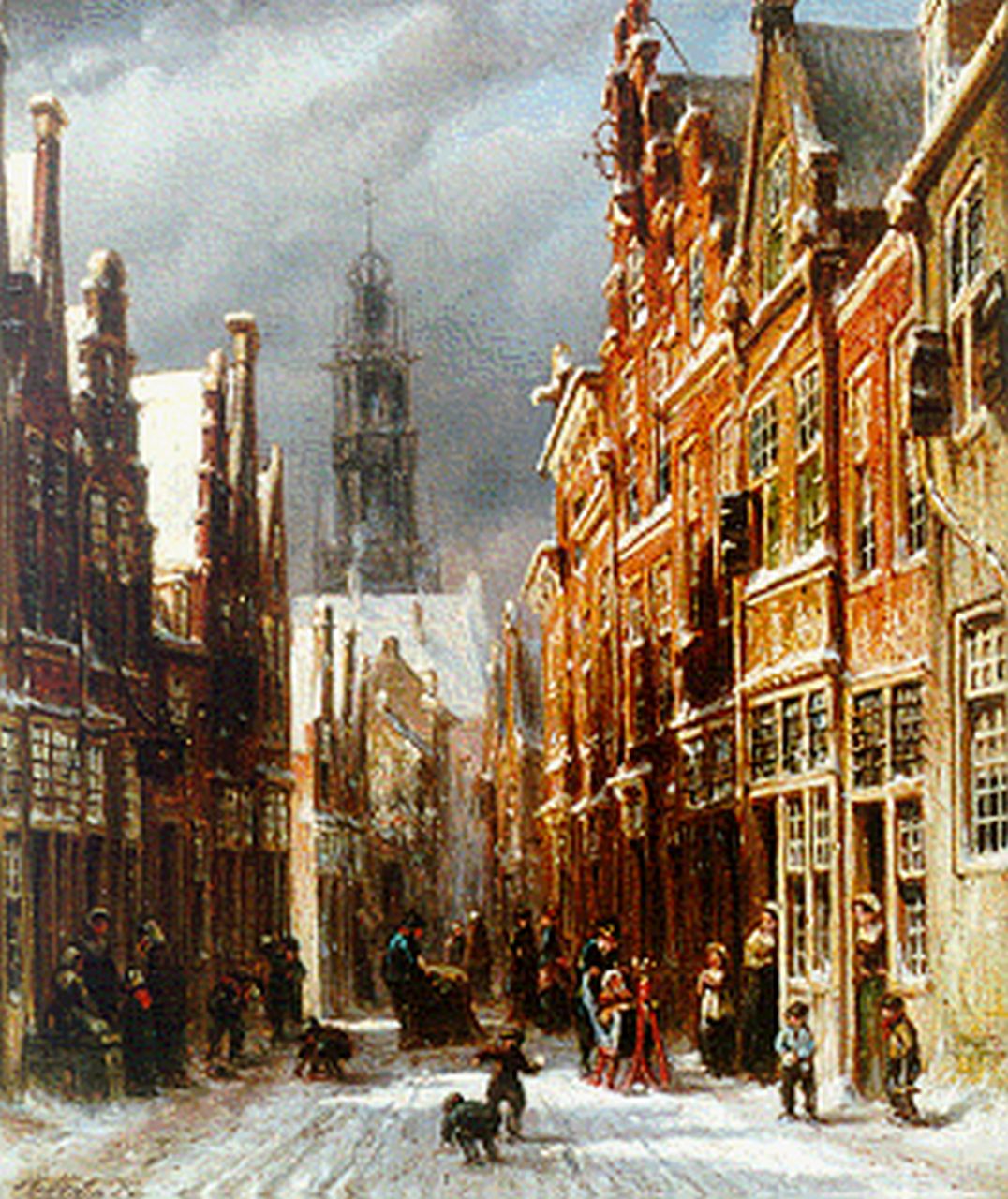 Petrus Gerardus Vertin erhielt seine Ausbildung an der Akademie in Den Haag, was bedeutet, dass sein Werk als Teil der Den Haager Romantik angesehen wird. Sommers wie winters malte er niederländische Stadtlandschaften und Straßen. Er ließ diese gelegentlich von seinen Freunden Charles Rochussen, J.F. Hoppenbrouwers und S.L. Verveer. Manchmal ist seine Arbeit topographisch, aber meistens entschied sich Vertin für Fantasiebilder. In seinen Winteransichten widmete er der Lichtreflexion auf schneebedeckten Dächern, Fensterrahmen und Bürgersteigen große Aufmerksamkeit.