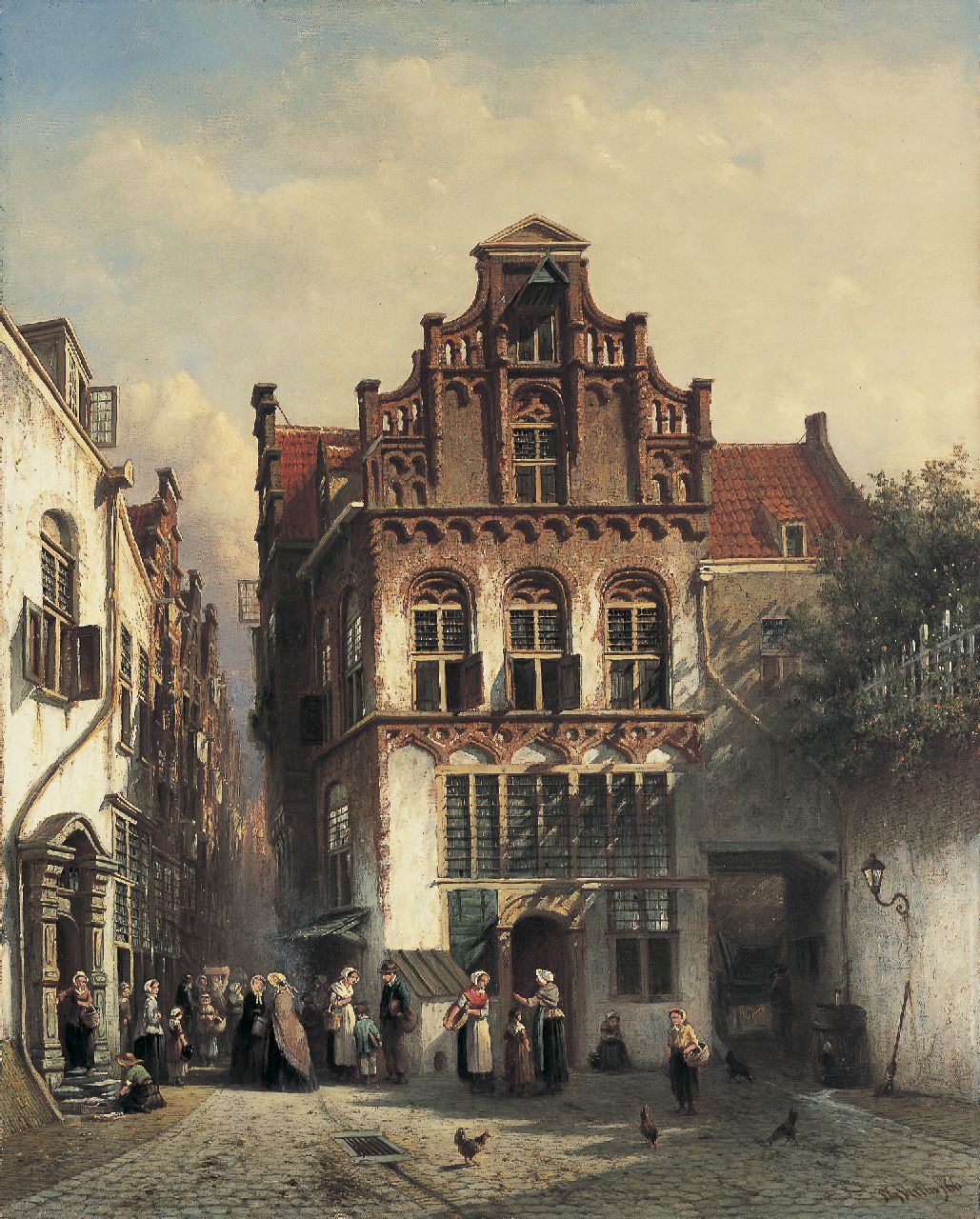Petrus Gerardus Vertin Kunstwerk • Gemälde • zuvor zu verkaufen Daily activities in a Dutch town