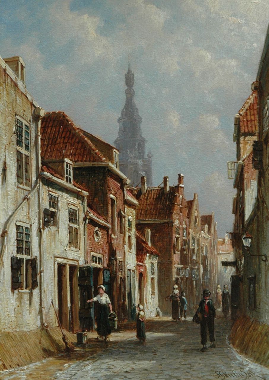 Petrus Gerardus Vertin Kunstwerk • Gemälde • zuvor zu verkaufen Figures on the street in a sunny town