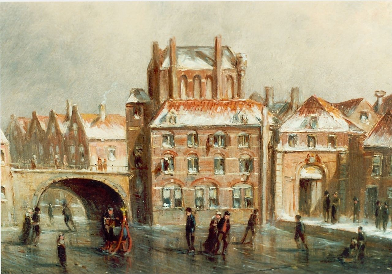 Petrus Gerardus Vertin Kunstwerk • Gemälde • zuvor zu verkaufen Skaters on a frozen canal