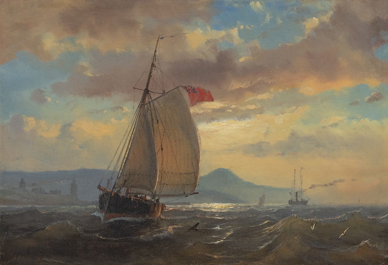 Petrus Paulus Schiedges Kunstwerk • Gemälde • zu verkaufen Segelschiff vor der englischen Küste