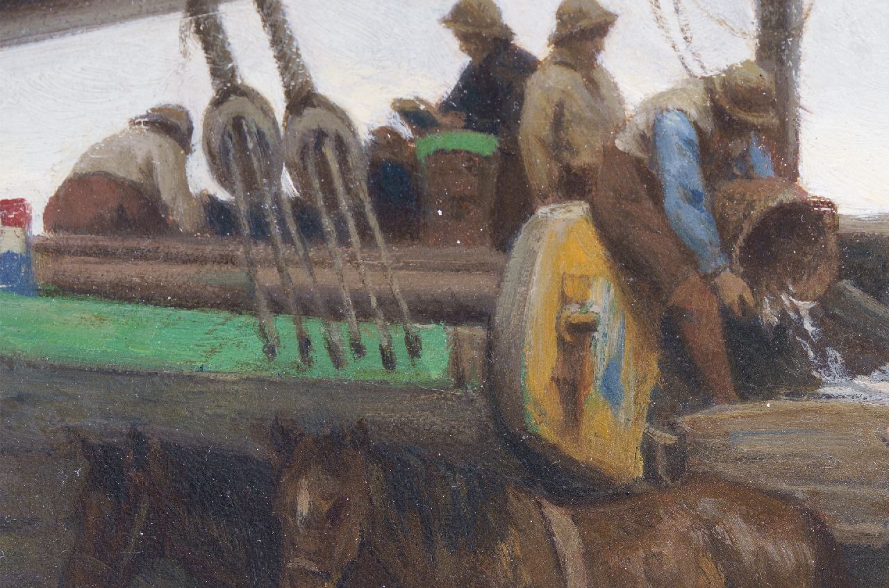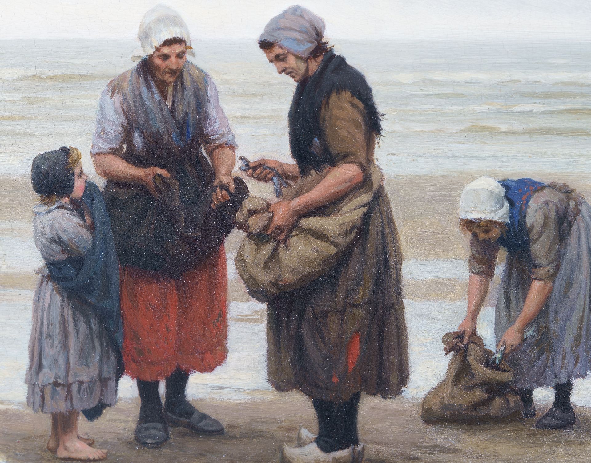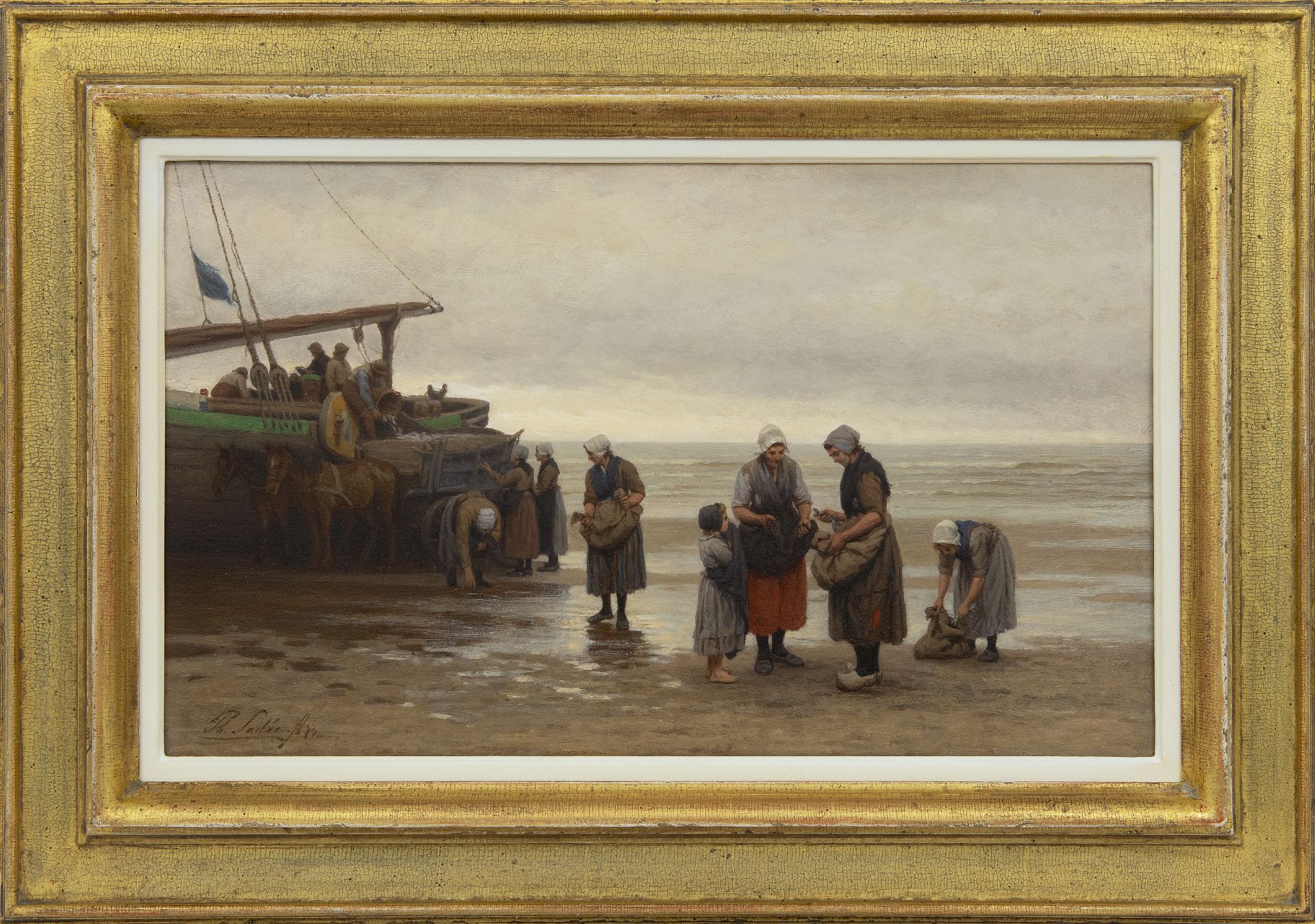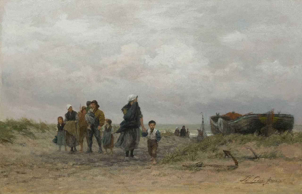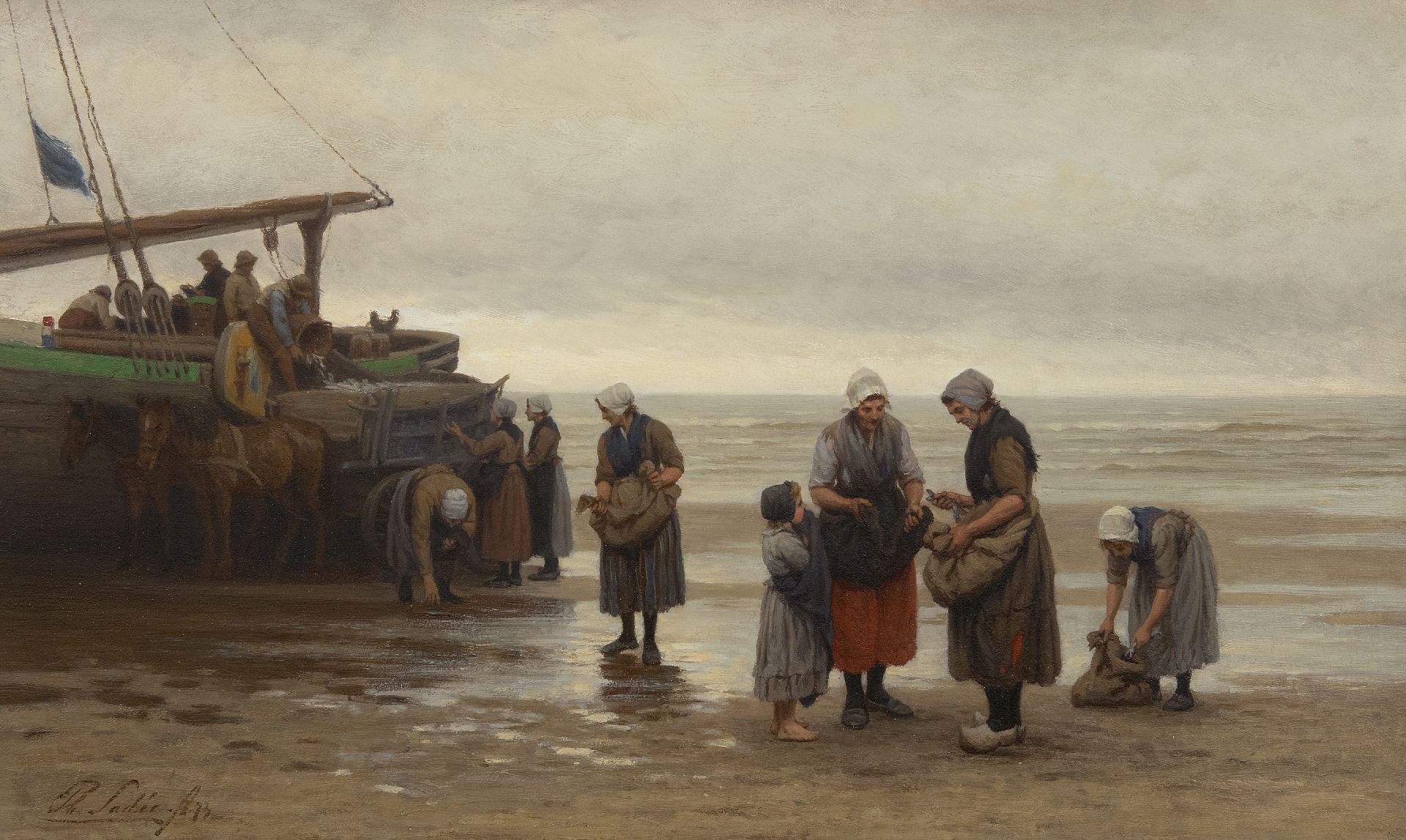 Im Anfang malte der Haager Maler Philip Sadeé Historiestücke. Ab 1865 studierte er an der Akademie von Düsseldorf, Zentrum der Düsseldorfer Mahlerschule, berühmt um seine Genremalerei. Dort fing Sadeé mit der Malerei von Genrestücken an. Nach seinem Rückkehr in die Niederlande 1888 verlegte er sich auf dem Fischergenre. Dazu hielt er sich oft in Scheveningen auf, namentlich im Herbst mit seiner niedrigen Sonne, grauen Lüften und Nebel. Genau wie Josef Israëls stellte er oft das schwere Leben der Fischerfrauen bildlich dar.