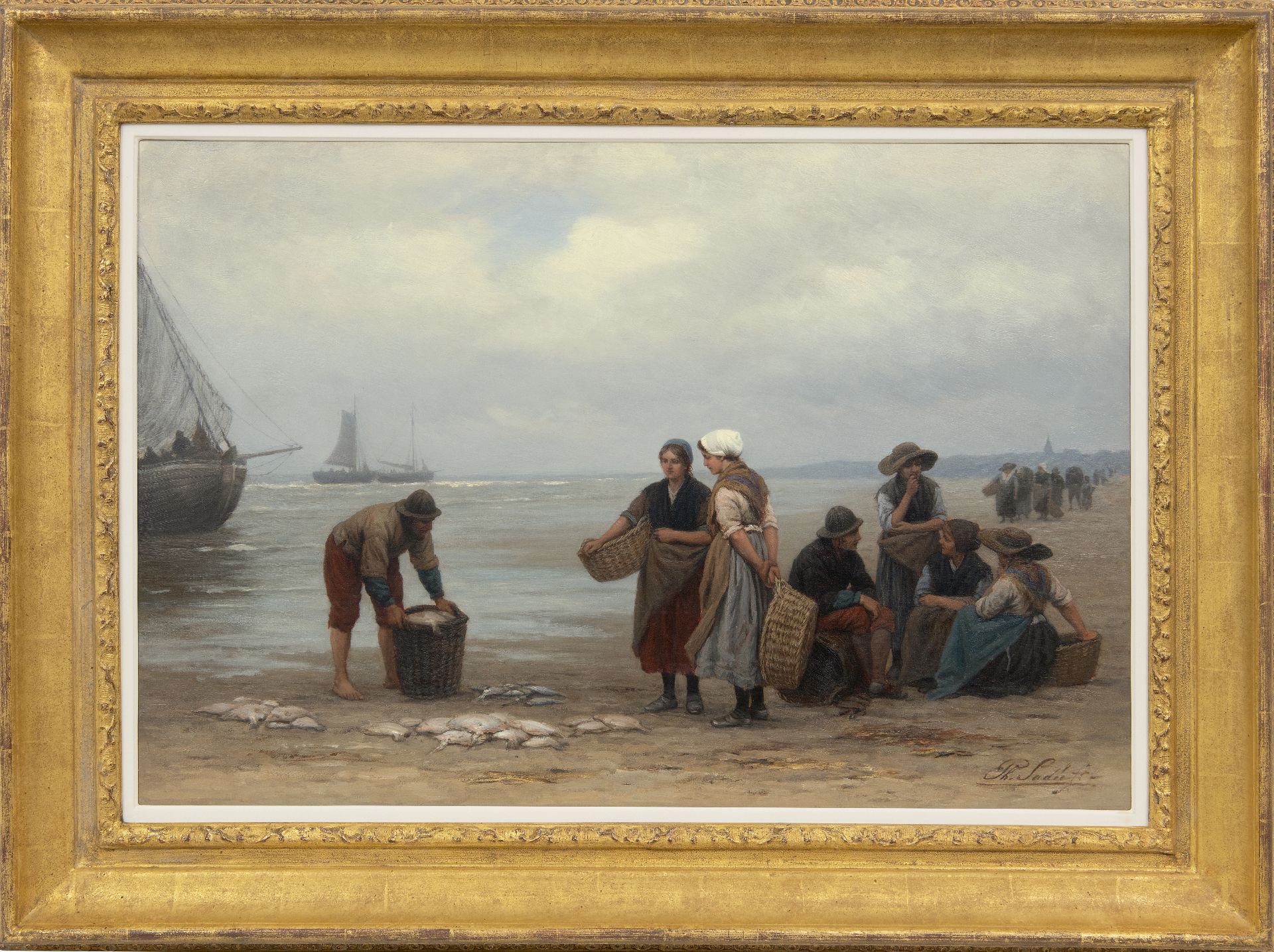 Philip Sadée Kunstwerk • Gemälde • zuvor zu verkaufen Fisch Verkauf am Strand von Scheveningen