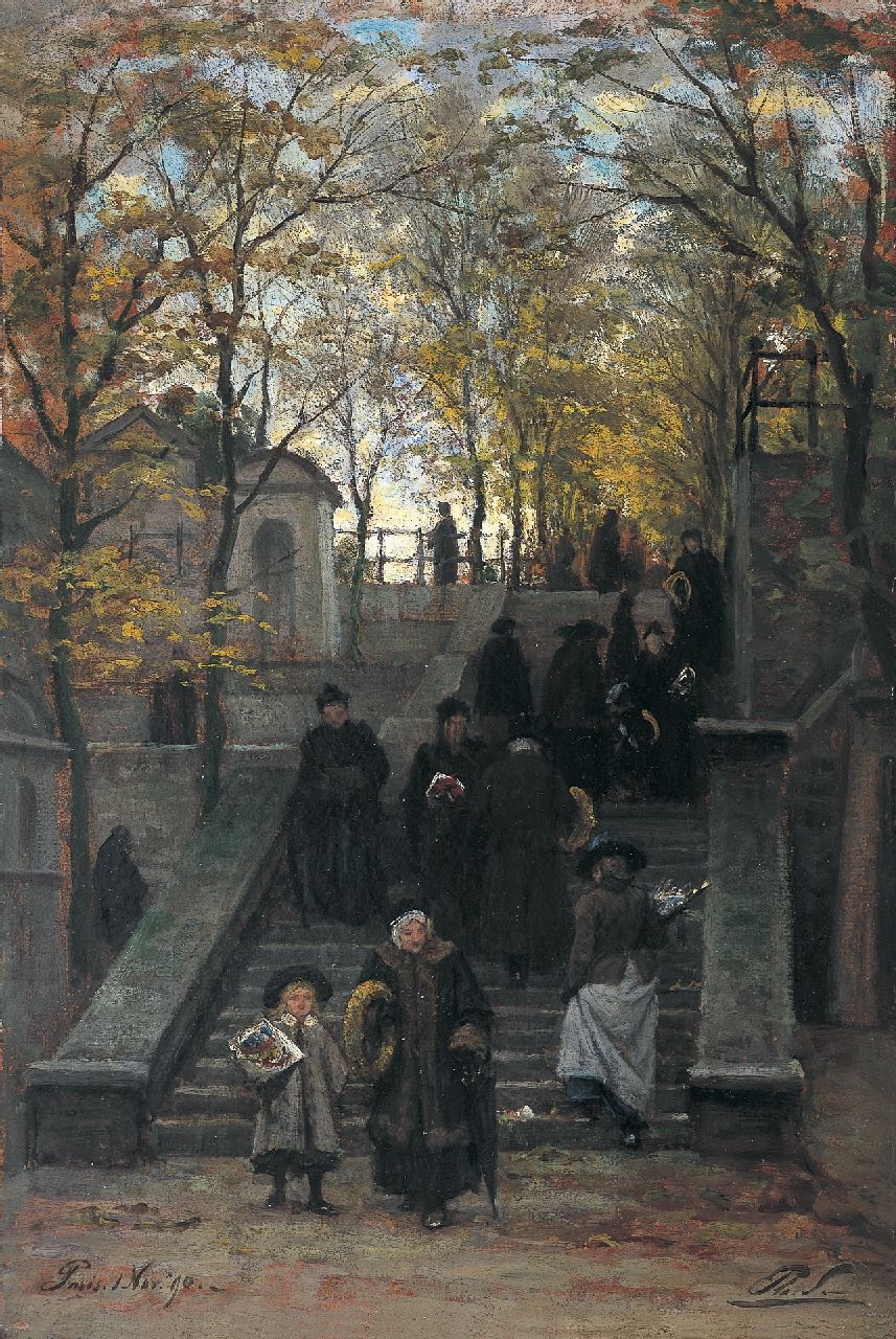 Philip Sadée Kunstwerk • Gemälde • zuvor zu verkaufen Strollers on the 'Cimetière de Montmartre', Paris