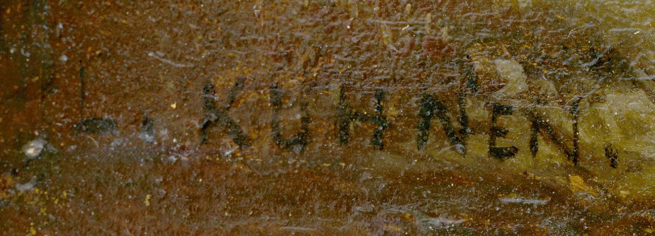 Pierre-Louis Kühnen, auch bekannt als Pieter Lodewijk Kühnen, war ein romantischer Maler durch und durch. Er wurde in Aachen geboren und lernte das Malen in Brüssel, wo er bis zu seinem Lebensende lebte und arbeitete. Der Künstler wurde bekannt für sehr sensible Landschaften, meist bei Sonnenuntergang oder Mondlicht, die teilweise von dem Viehmaler Eugène Verboeckhoven gepolstert wurden. Meer over deze brontekstBrontekst vereist voor aanvullende vertaalinformatie Feedback sturen Zijvensters