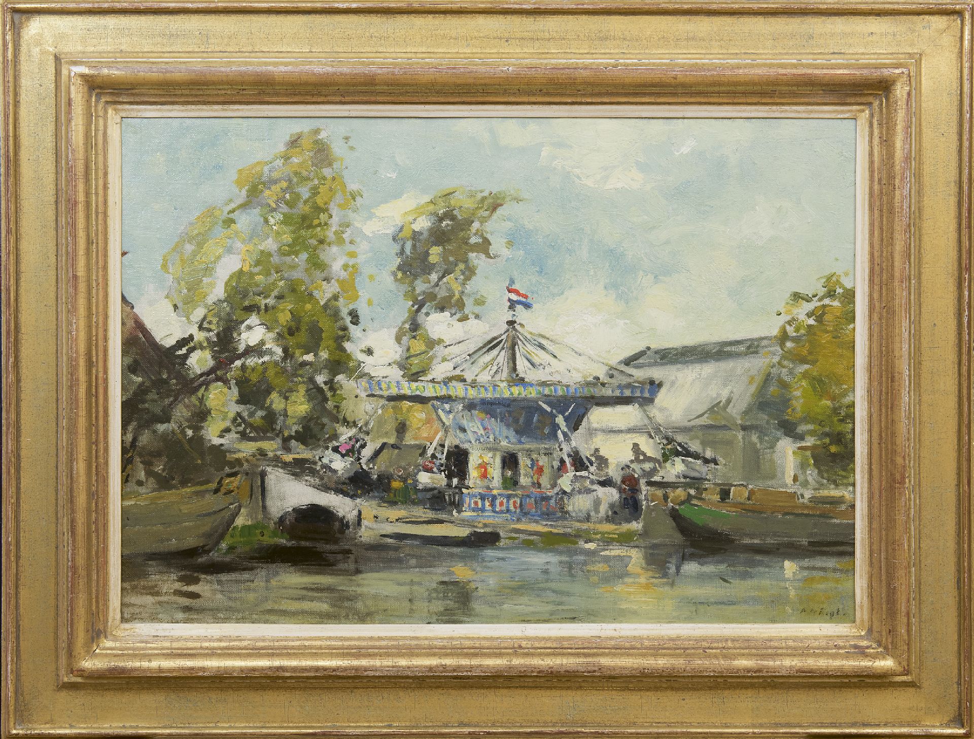 Piet de Regt Kunstwerk • Gemälde • zuvor zu verkaufen Kettenkarussell am Wasser