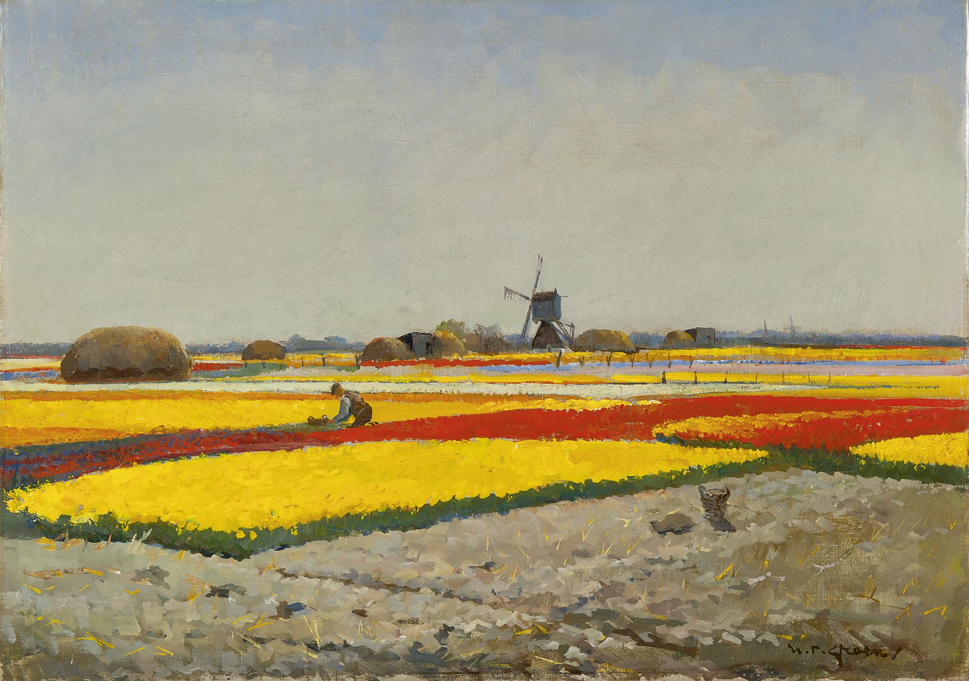 Piet Groen Kunstwerk • Gemälde • zuvor zu verkaufen Blühende Tulpenfelder