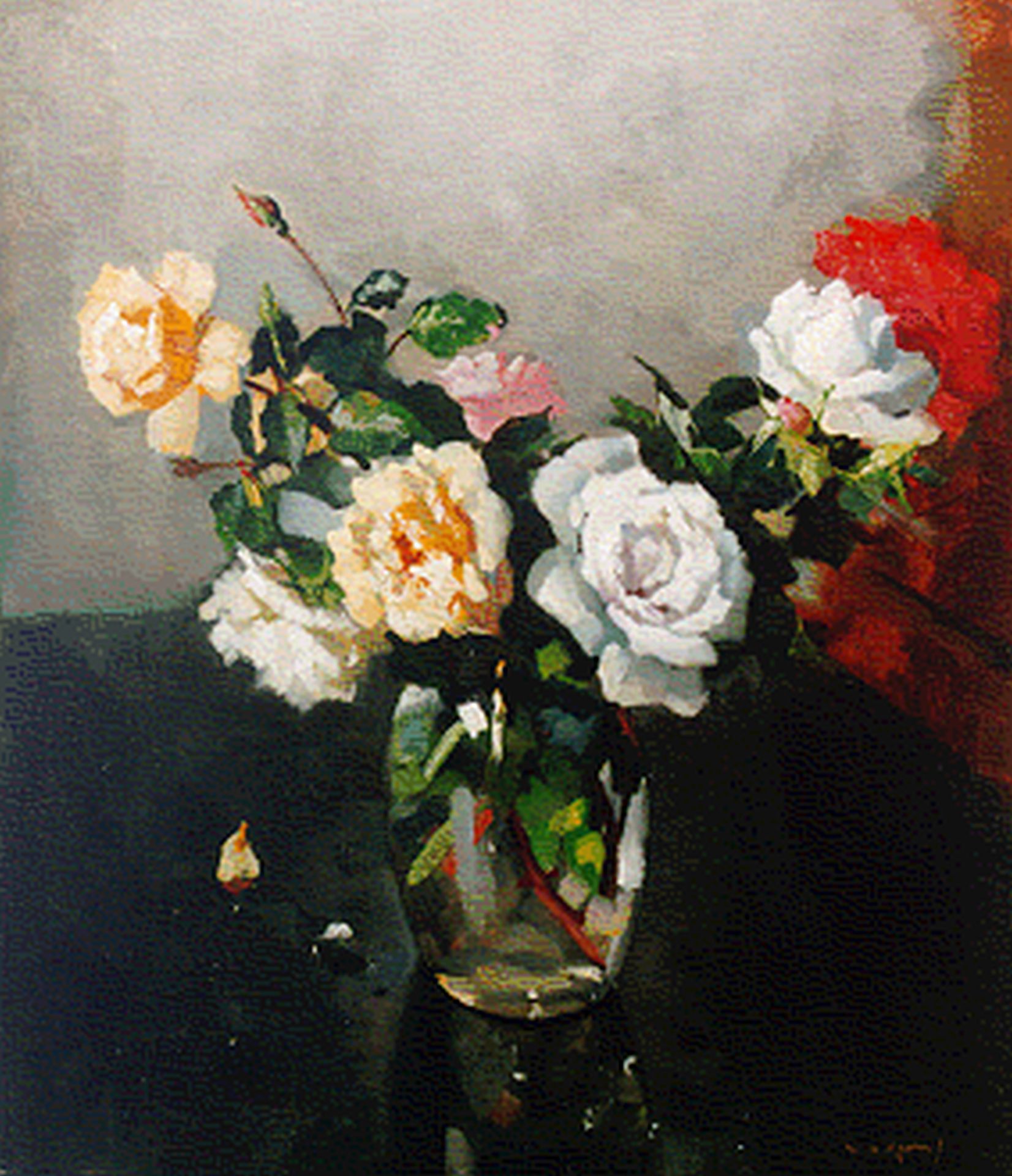 Piet Groen Kunstwerk • Gemälde • zuvor zu verkaufen Roses in a glass vase