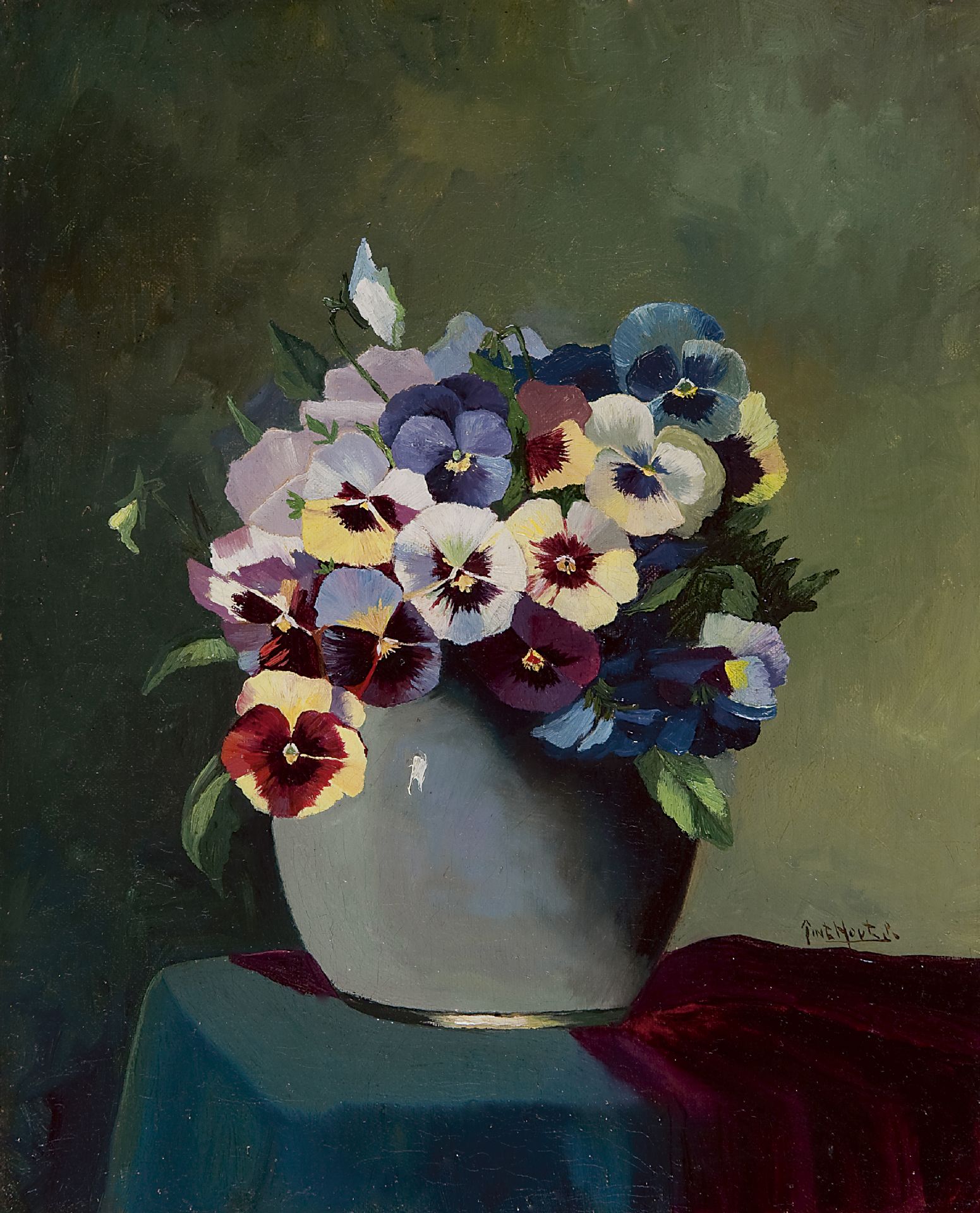 Piet in 't Hout Kunstwerk • Gemälde • zuvor zu verkaufen Violets in a vase
