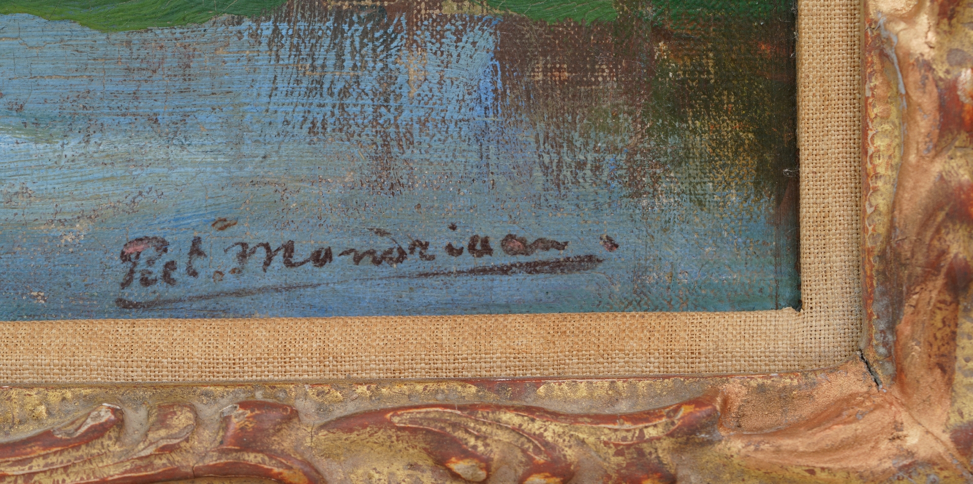 Piet Mondriaan Kunstwerk • Gemälde • zuvor zu verkaufen Bauernhof Geinrust hinter Baumreihe an der Gein mit 'isoliertem Baum'
