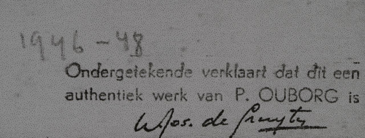 Piet Ouborg gilt als einer der Macher der modernen Kunst in den Niederlanden. Er verbrachte die Jahre 1916-1938 in Niederländisch-Ostindien. Diese Zeit war entscheidend für seine künstlerische Entwicklung. Er geriet in den Bann der östlichen Kunst, die stark mit dem Mystischen und Spirituellen verbunden ist. Auch den europäischen Surrealisten fühlte er sich eng verbunden: Er teilte deren Ansicht, dass es die Aufgabe der Kunst sei, das Unbewusste sichtbar zu machen. Ouborg entwickelte eine eigene Interpretation des Surrealismus, der sich allmählich zum abstrakten Expressionismus entwickelte. Seine Arbeiten zeigen oft eine große Leichtigkeit und Spontaneität der Geste und sind der Kunst der Cobra-Bewegung verwandt, diskreter, aber ebenso vital. Ouborg war Mitglied von Vrij Beelden (1946-47) und Liga Nieuw Beelden (1955-56) Meer over deze brontekstBrontekst vereist voor aanvullende vertaalinformatie Fe