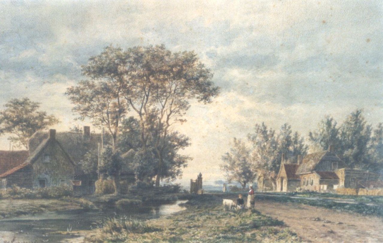 Piet Schipperus Kunstwerk • Aquarell • Zeichnung • zuvor zu verkaufen Figures on a country road