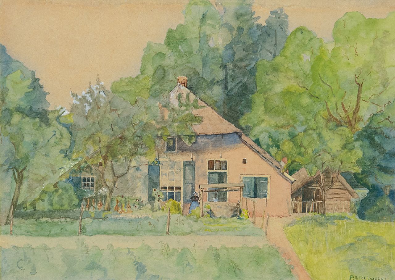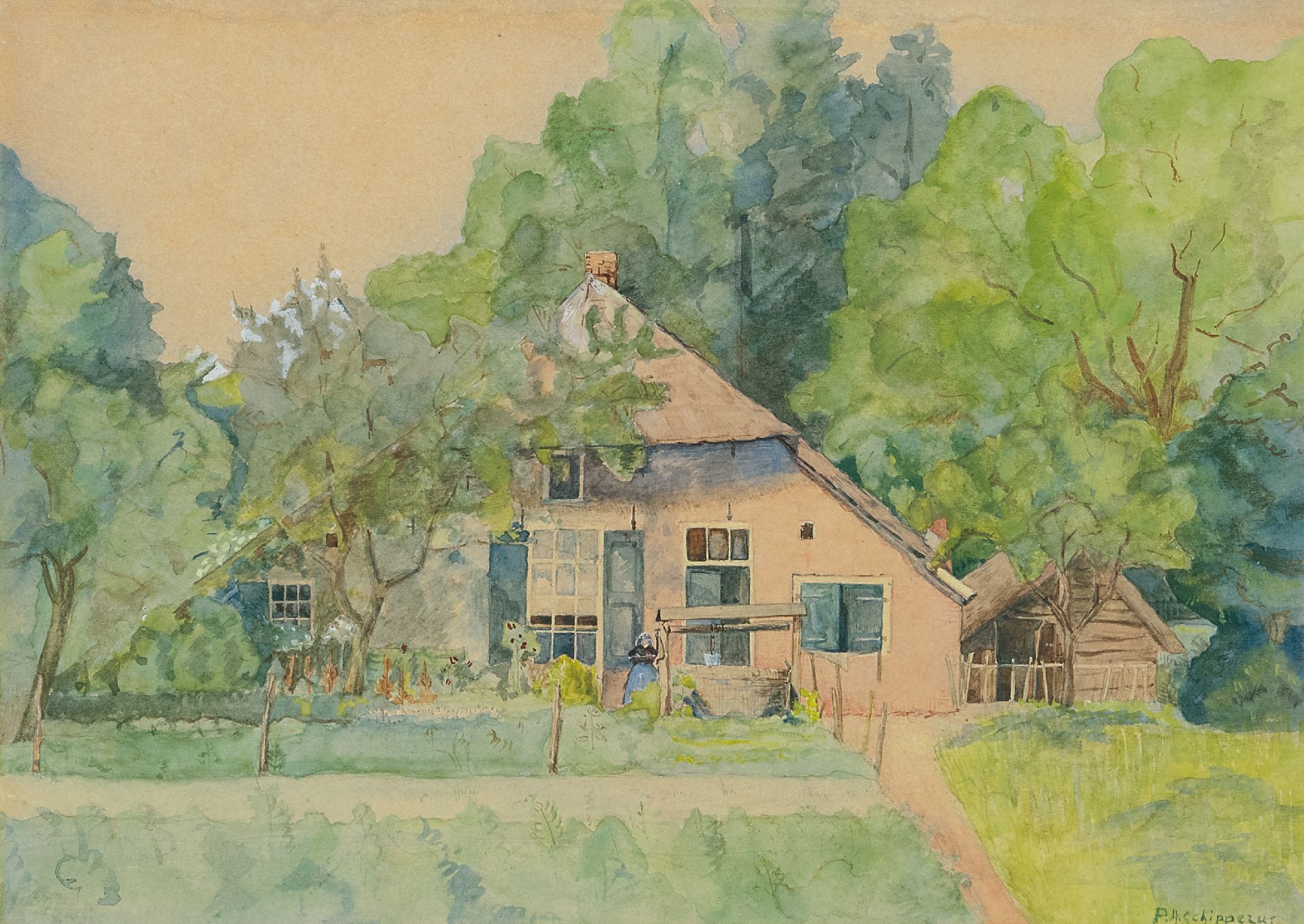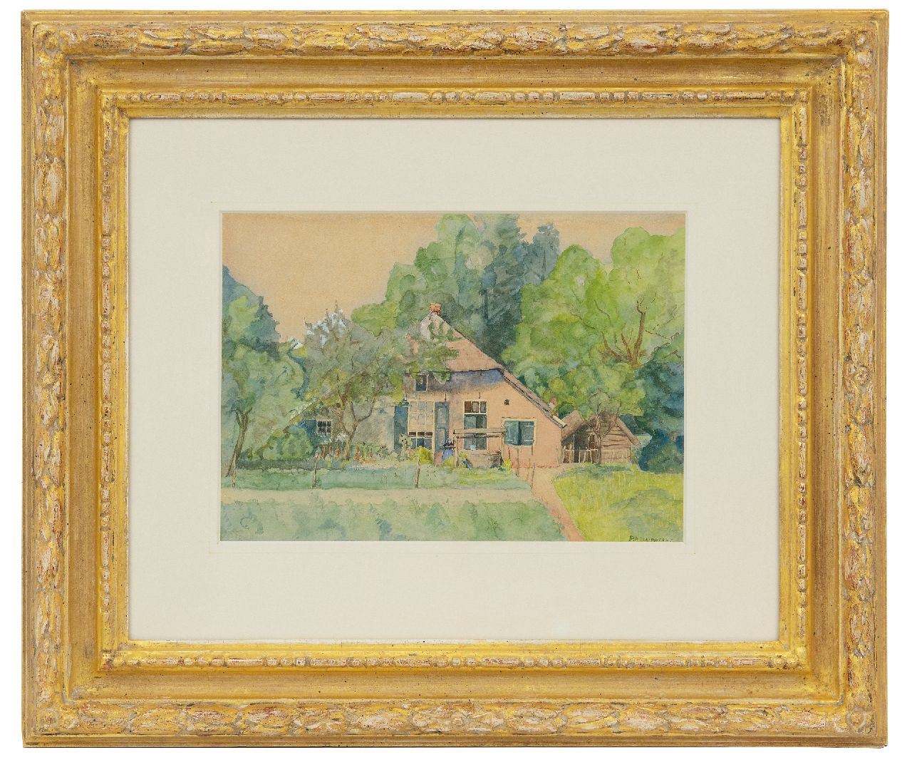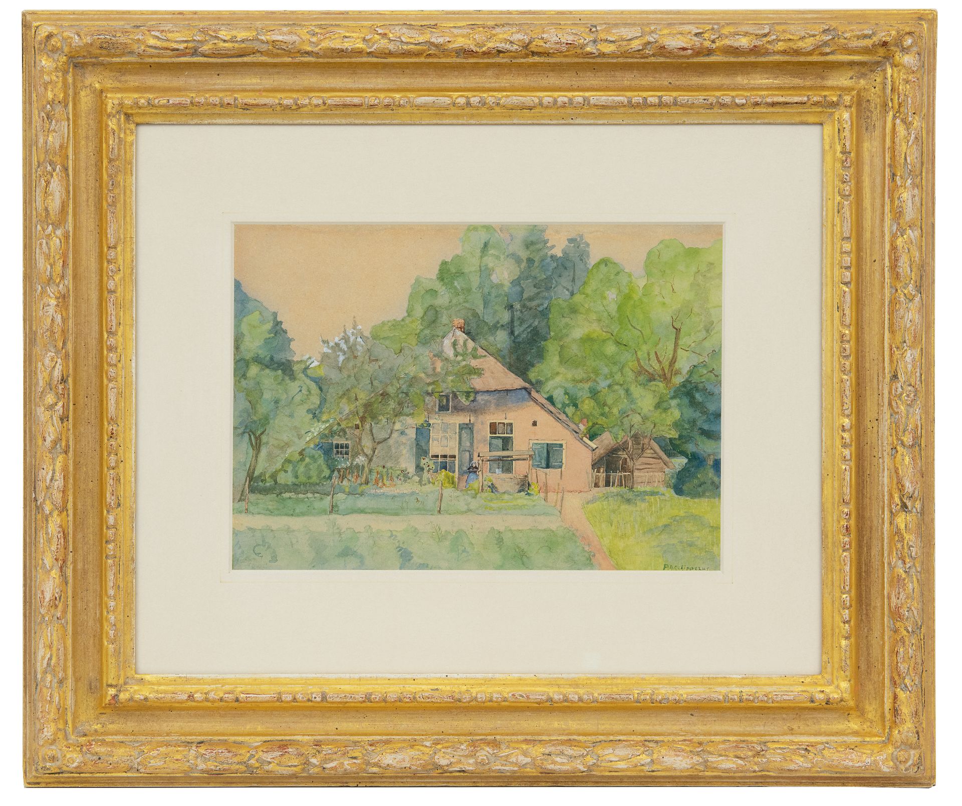 Piet Schipperus Kunstwerk • Aquarell • Zeichnung • zu verkaufen Kleines Gehöft im Wald