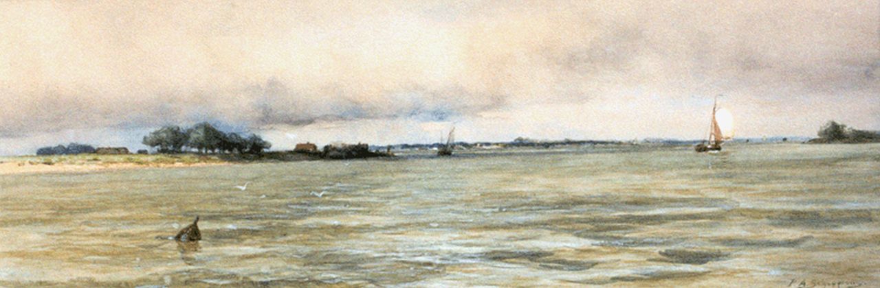 Piet Schipperus Kunstwerk • Aquarell • Zeichnung • zuvor zu verkaufen Shipping on a river