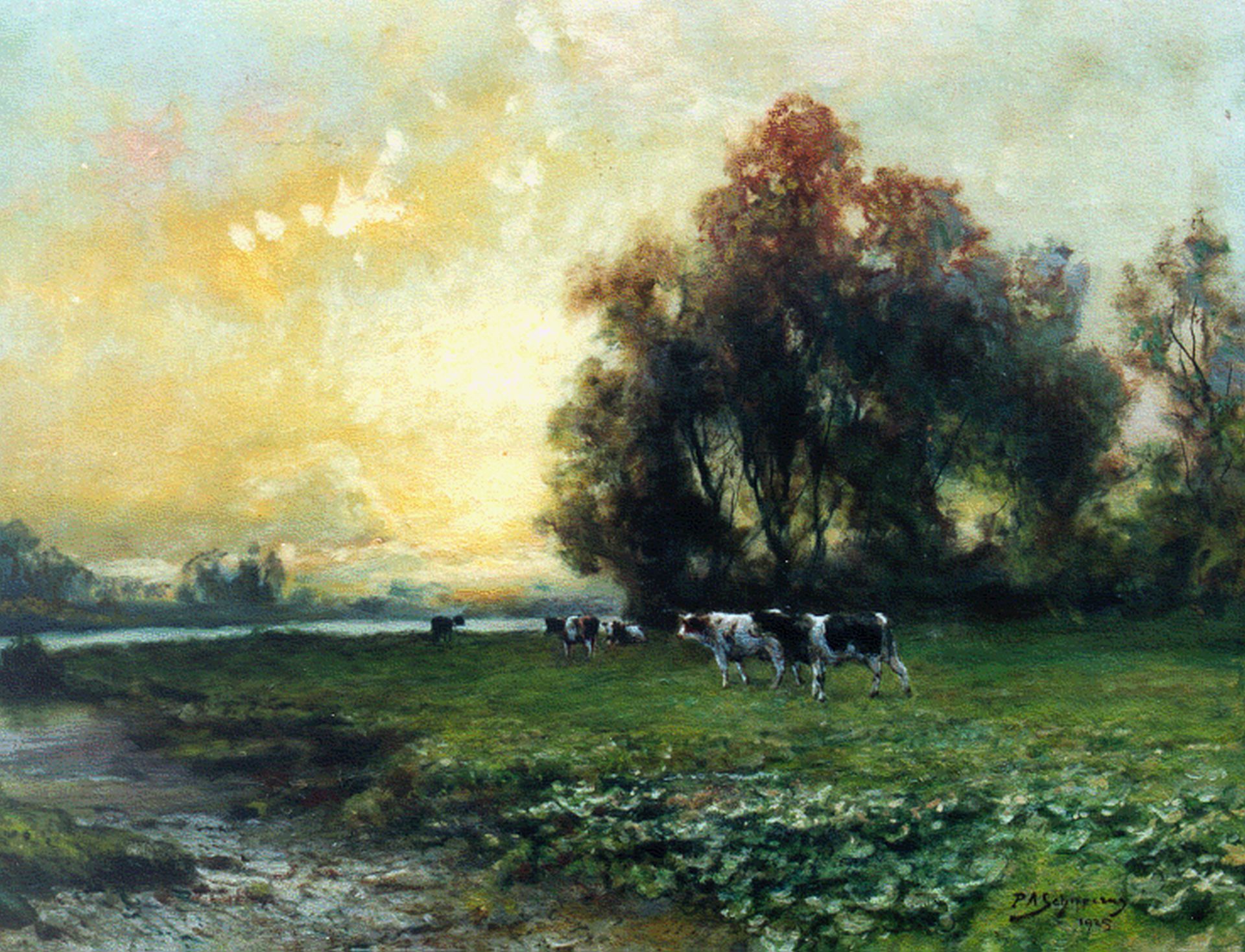Piet Schipperus Kunstwerk • Gemälde • zuvor zu verkaufen Cows in a river landscape