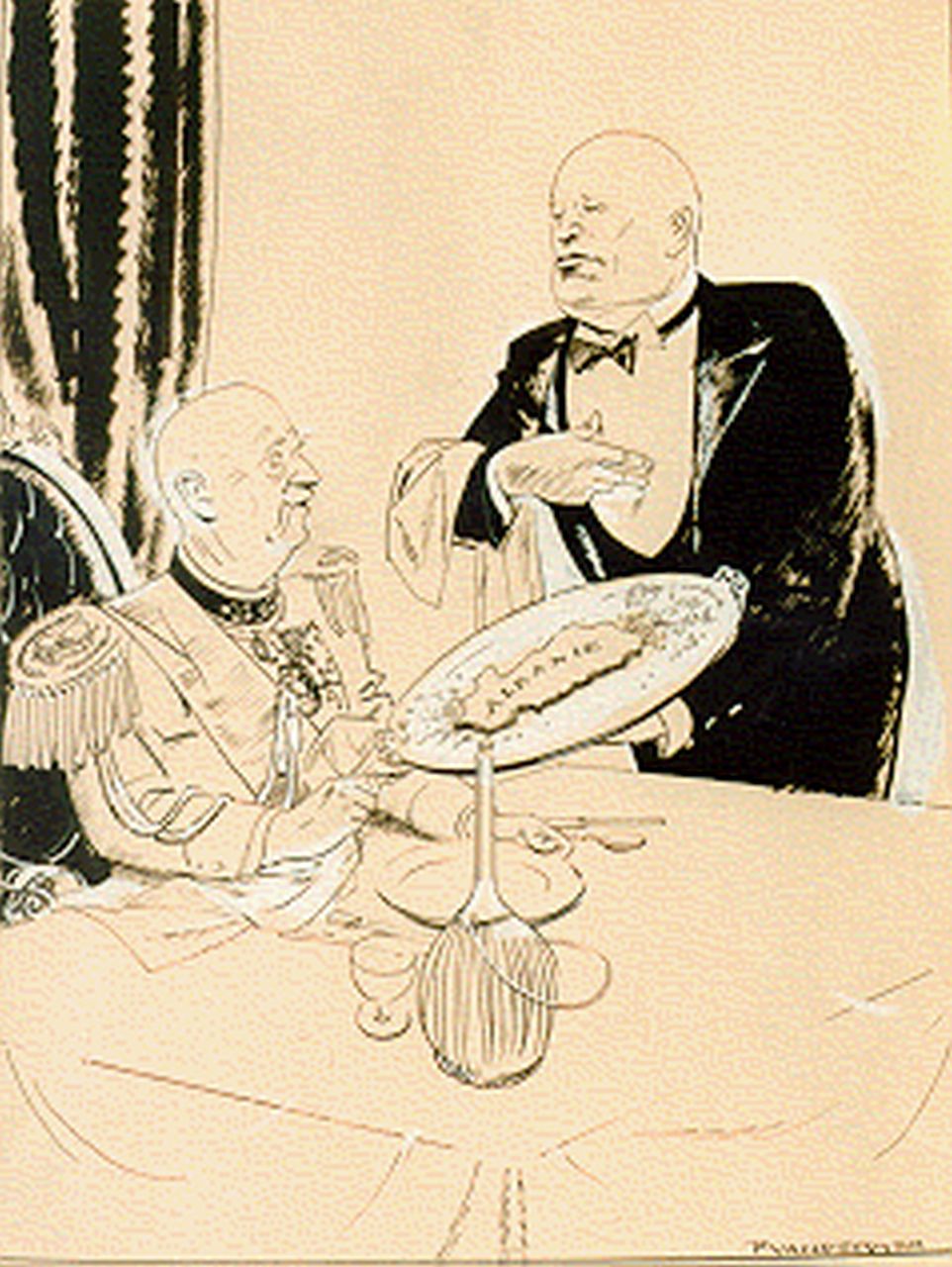 Piet van der Hem Kunstwerk • Aquarell • Zeichnung • zuvor zu verkaufen Albania on a tray