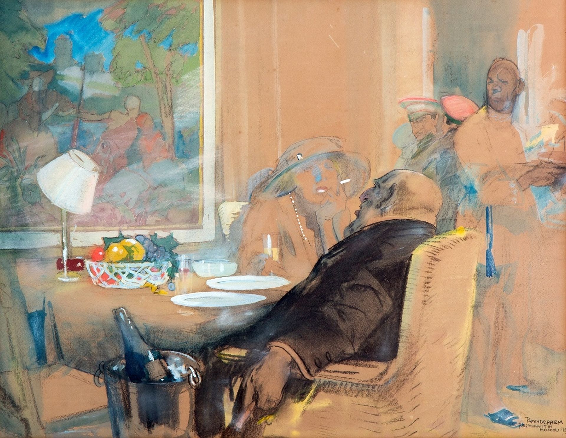 Piet van der Hem Kunstwerk • Aquarell • Zeichnung • zuvor zu verkaufen Das Abendessen