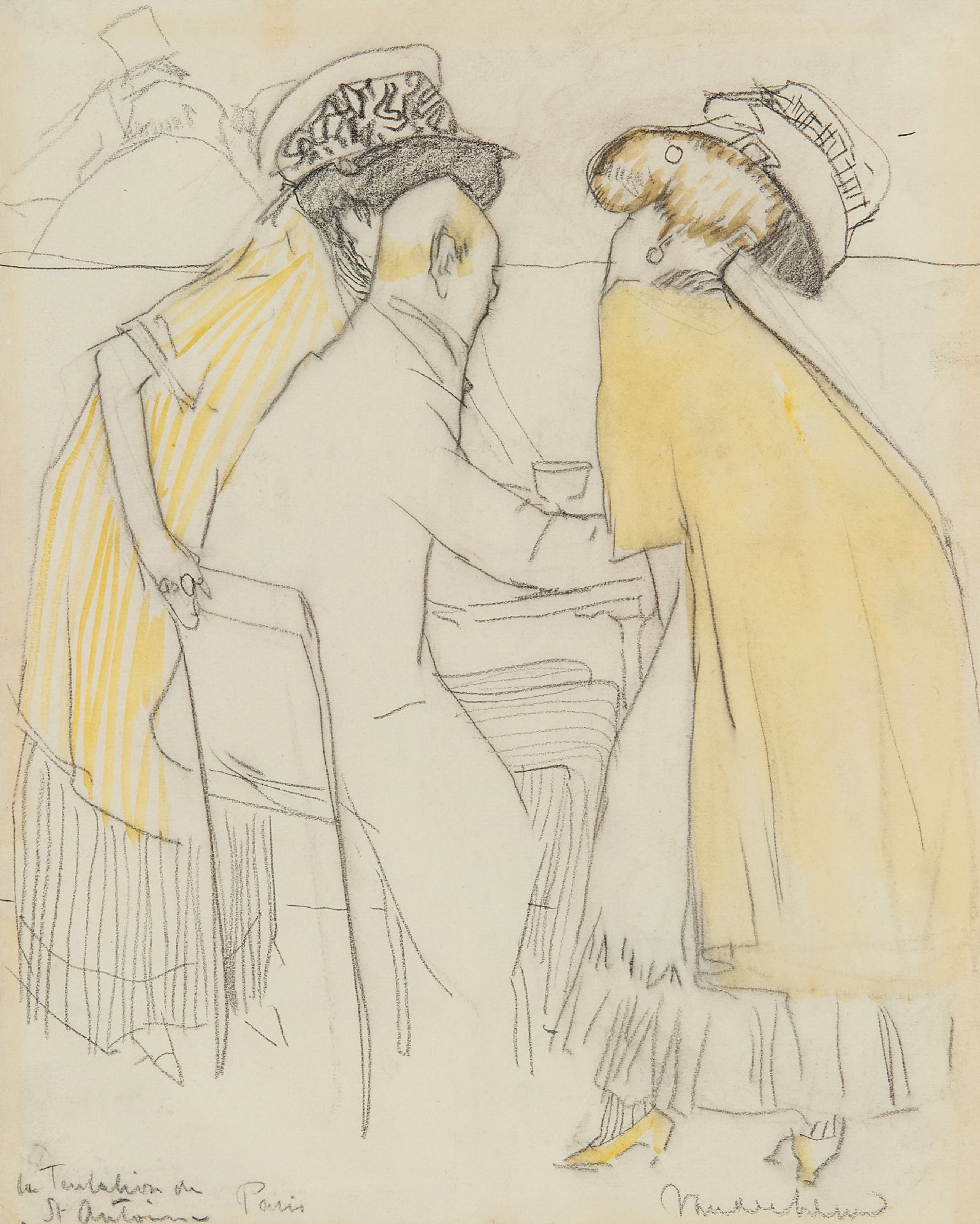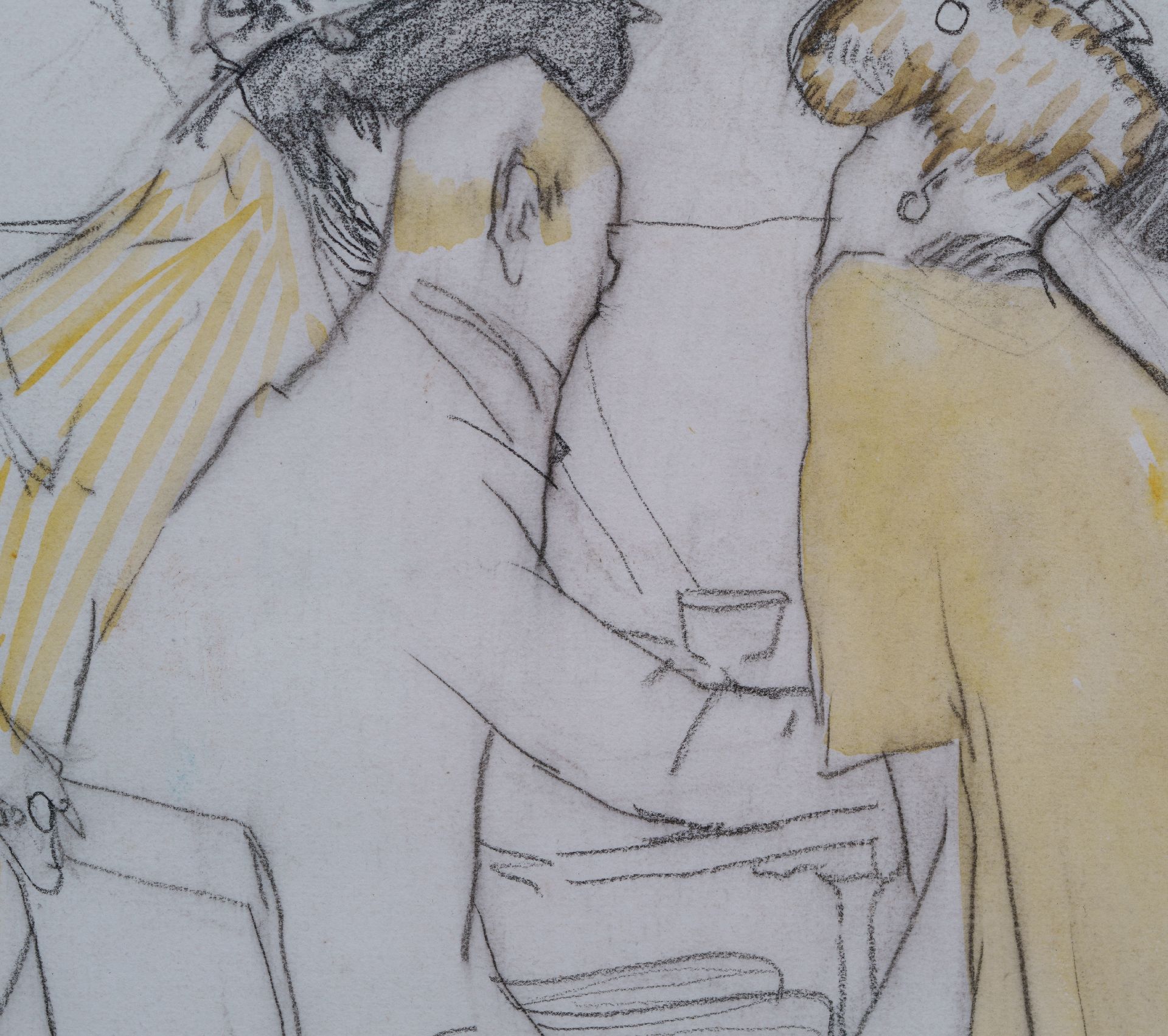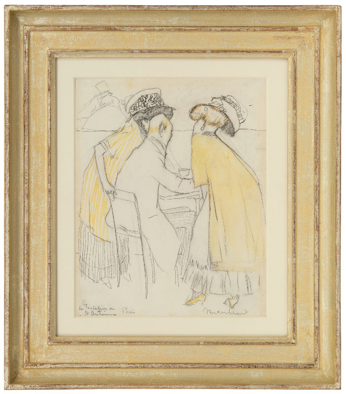 Piet van der Hem Kunstwerk • Aquarell • Zeichnung • zu verkaufen Im café ((La Tentation de St. Antoine)