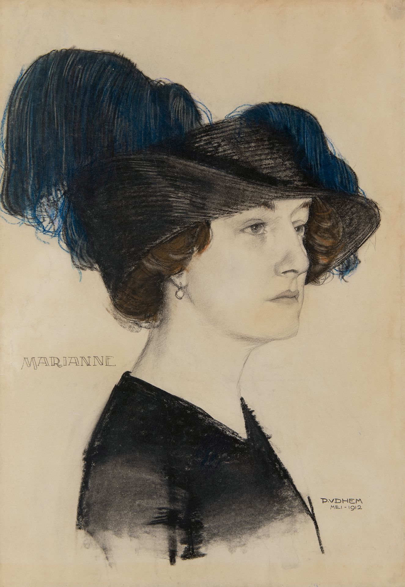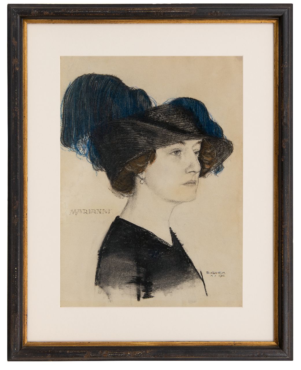 Piet van der Hem Kunstwerk • Aquarell • Zeichnung • zuvor zu verkaufen Marianne mit modischem Hut