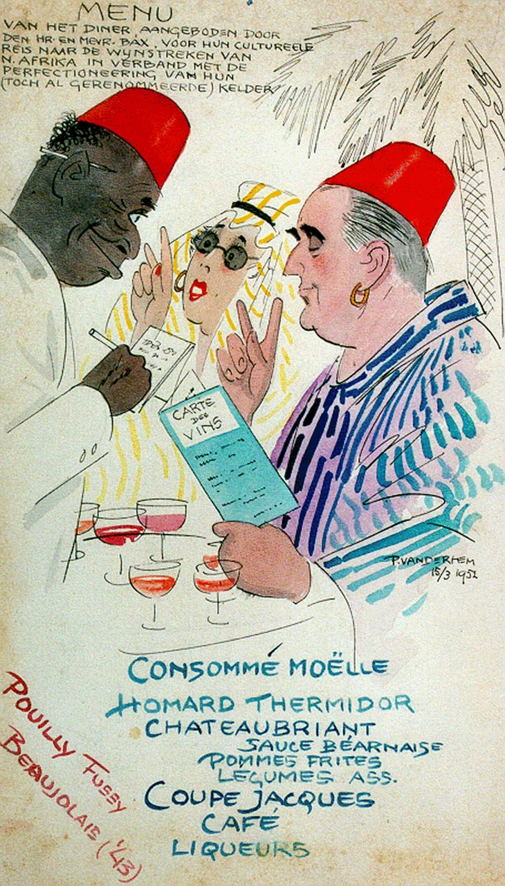 Piet van der Hem Kunstwerk • Aquarell • Zeichnung • zuvor zu verkaufen Menu for Mr. and Mrs. Bax