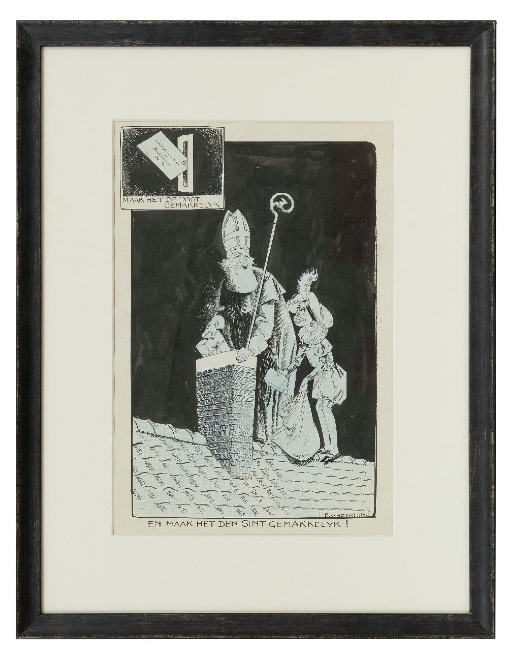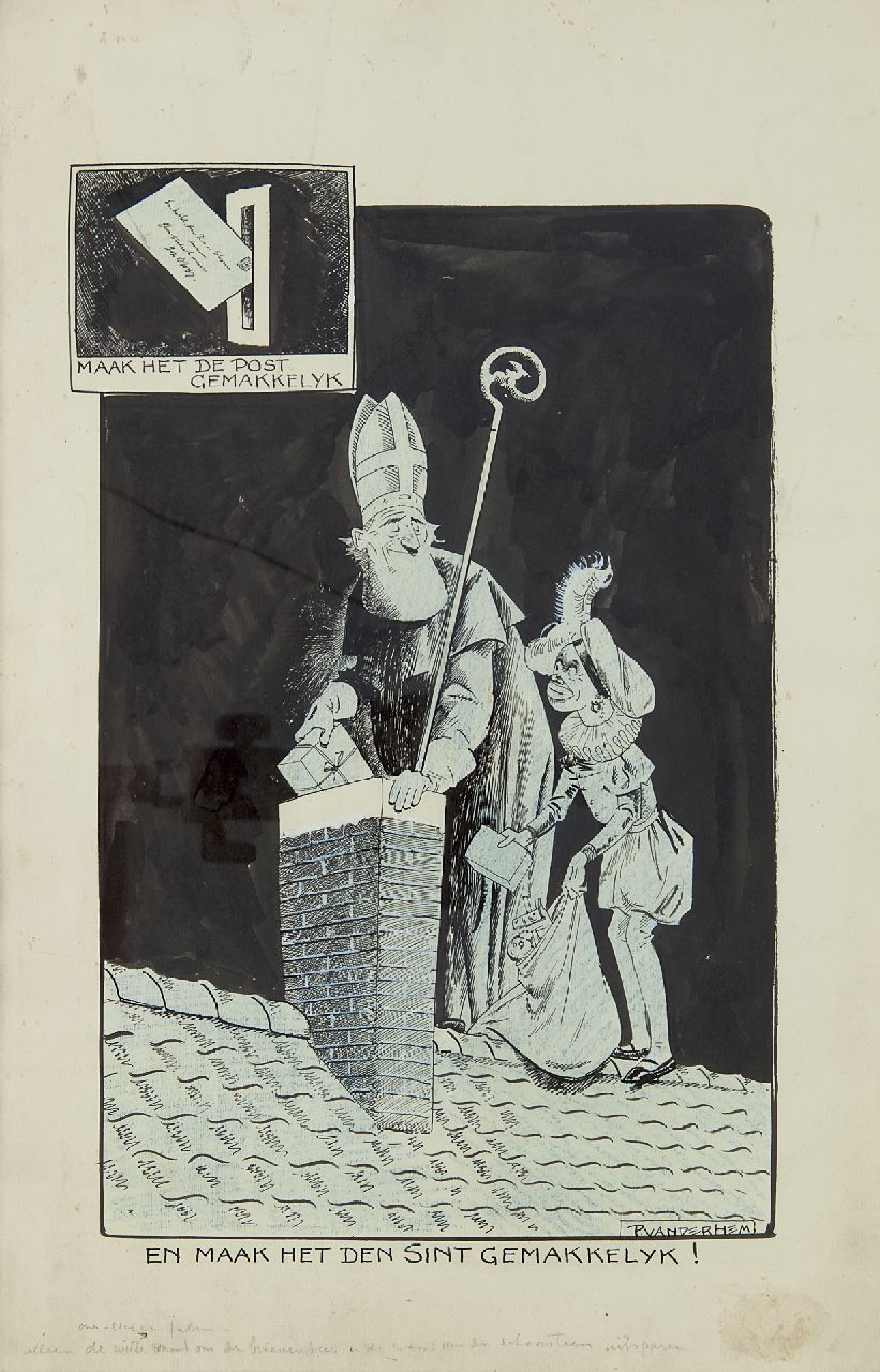 Piet van der Hem Kunstwerk • Aquarell • Zeichnung • zu verkaufen Sankt Nicolaus Abend