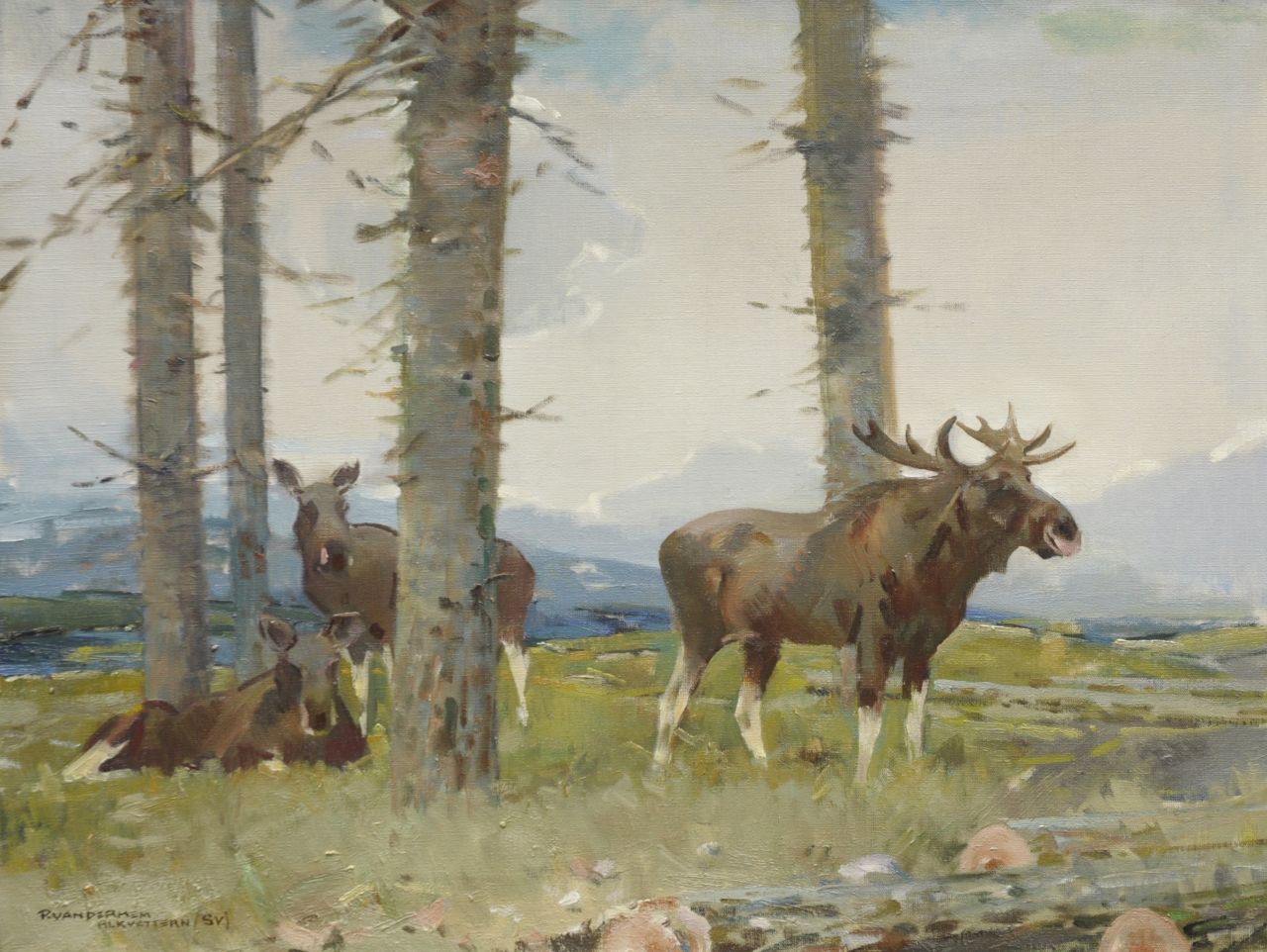 Piet van der Hem Kunstwerk • Gemälde • zuvor zu verkaufen Elks near Alkvettern, Zweden