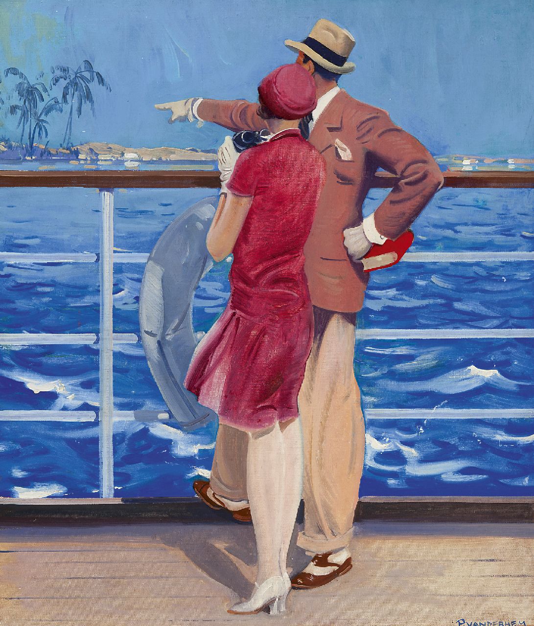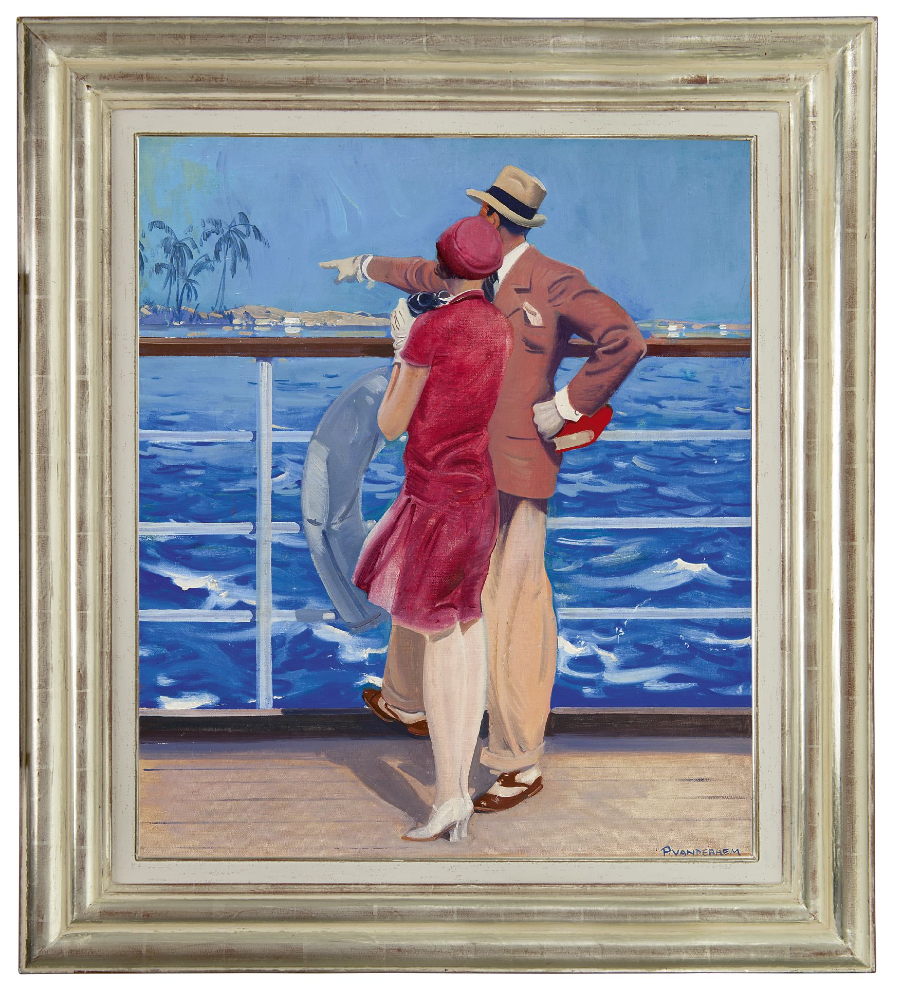 Piet van der Hem Kunstwerk • Gemälde • zuvor zu verkaufen Winterferien in den Tropen mit K.N.S.M.