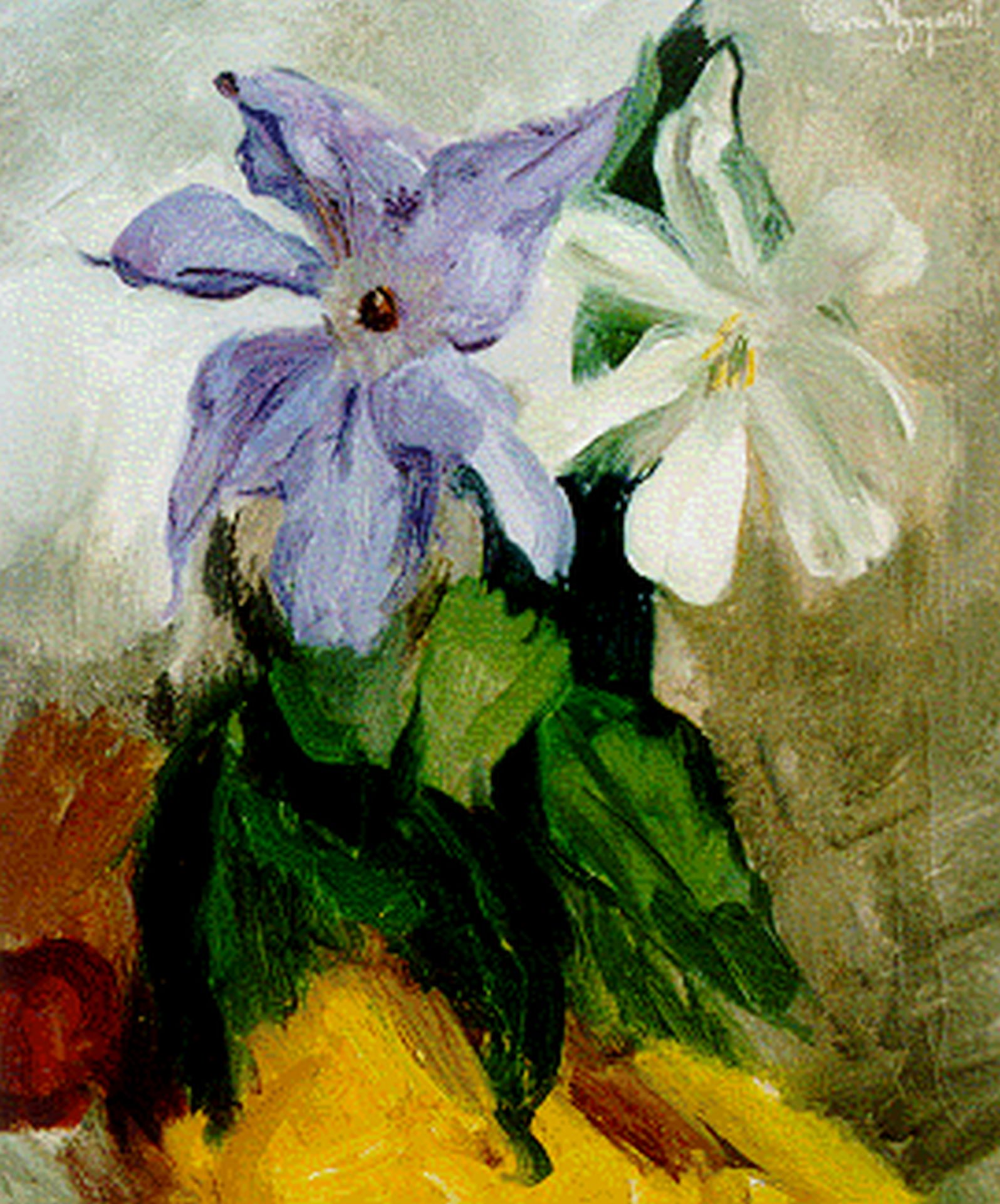 Piet van Wijngaerdt Kunstwerk • Gemälde • zuvor zu verkaufen A still life with a clematis and a tulip