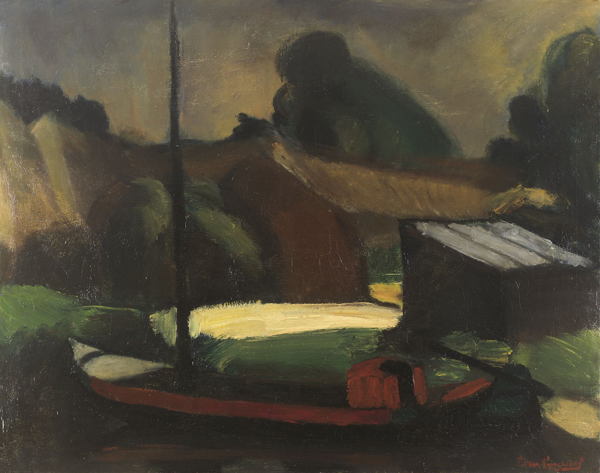 Piet van Wijngaerdt Kunstwerk • Gemälde • zuvor zu verkaufen Boat by a barn