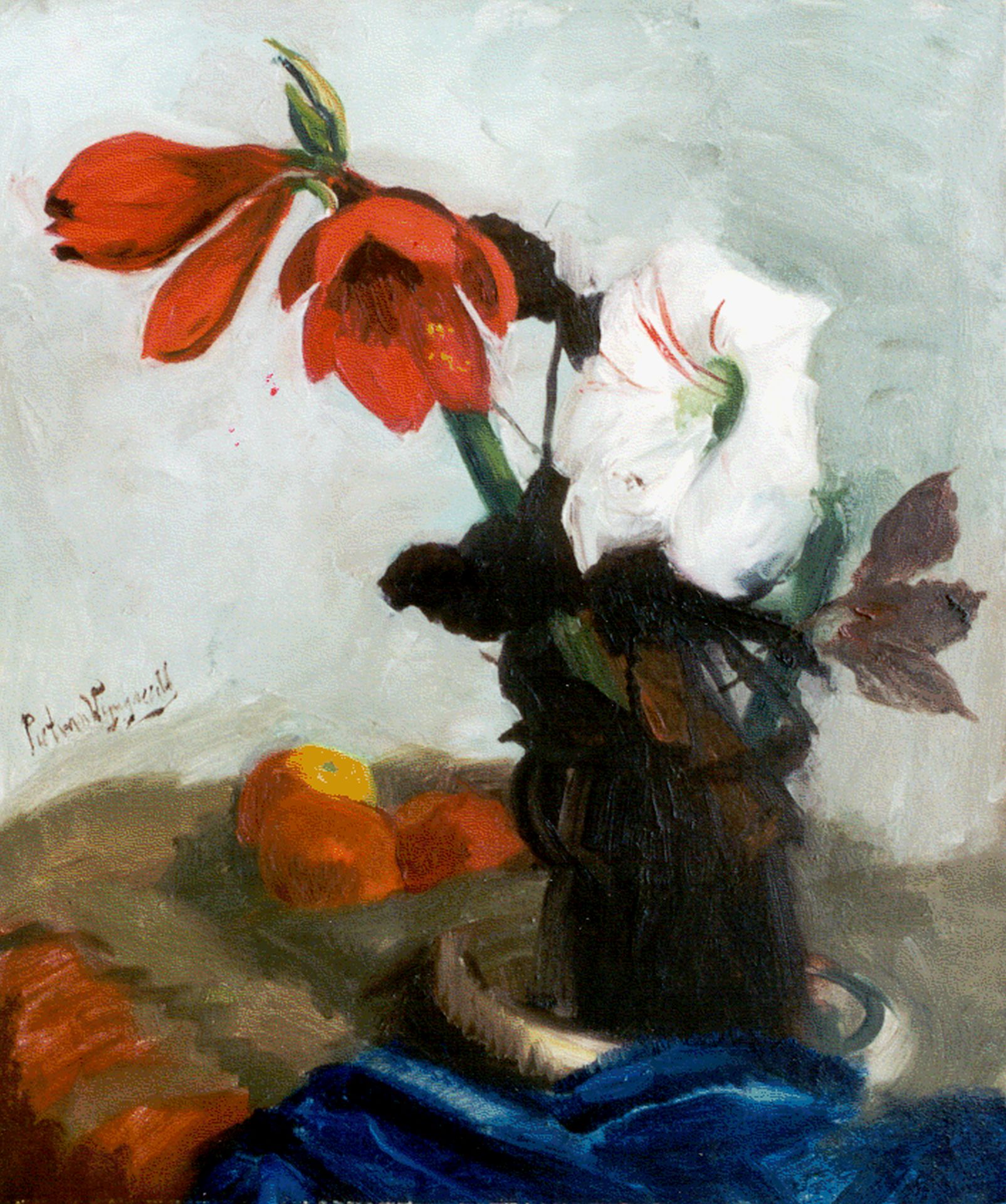 Piet van Wijngaerdt Kunstwerk • Gemälde • zuvor zu verkaufen Red and white amaryllis