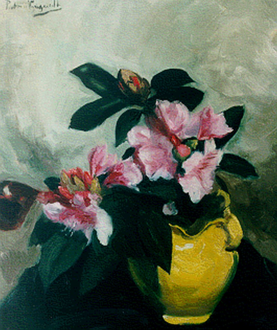 Piet van Wijngaerdt Kunstwerk • Gemälde • zuvor zu verkaufen Rhododendrons in a vase
