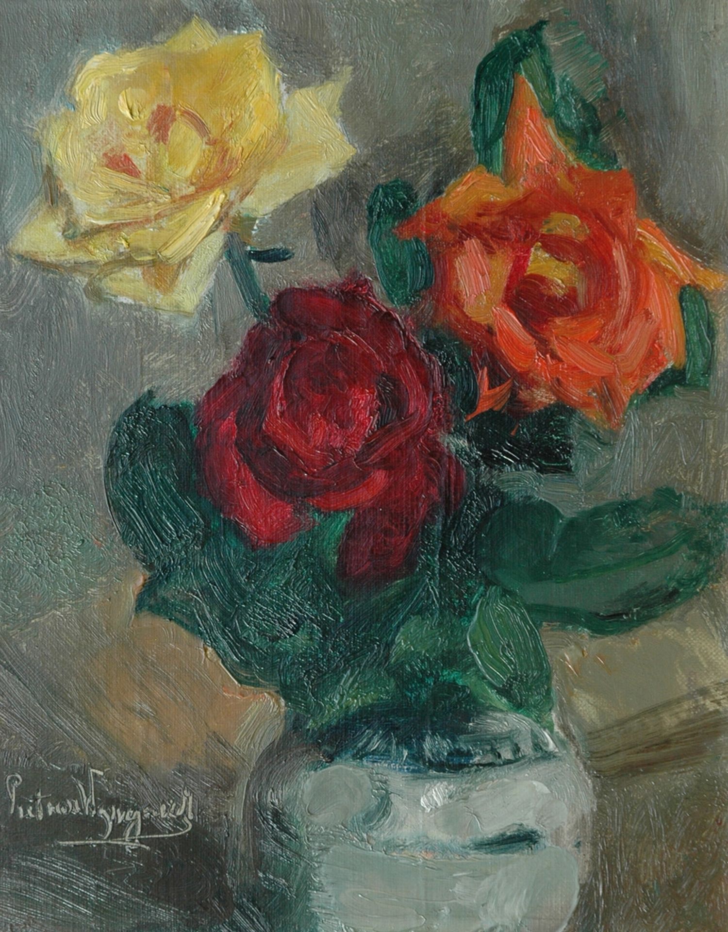 Piet van Wijngaerdt Kunstwerk • Gemälde • zuvor zu verkaufen Roses in a Cologne pot