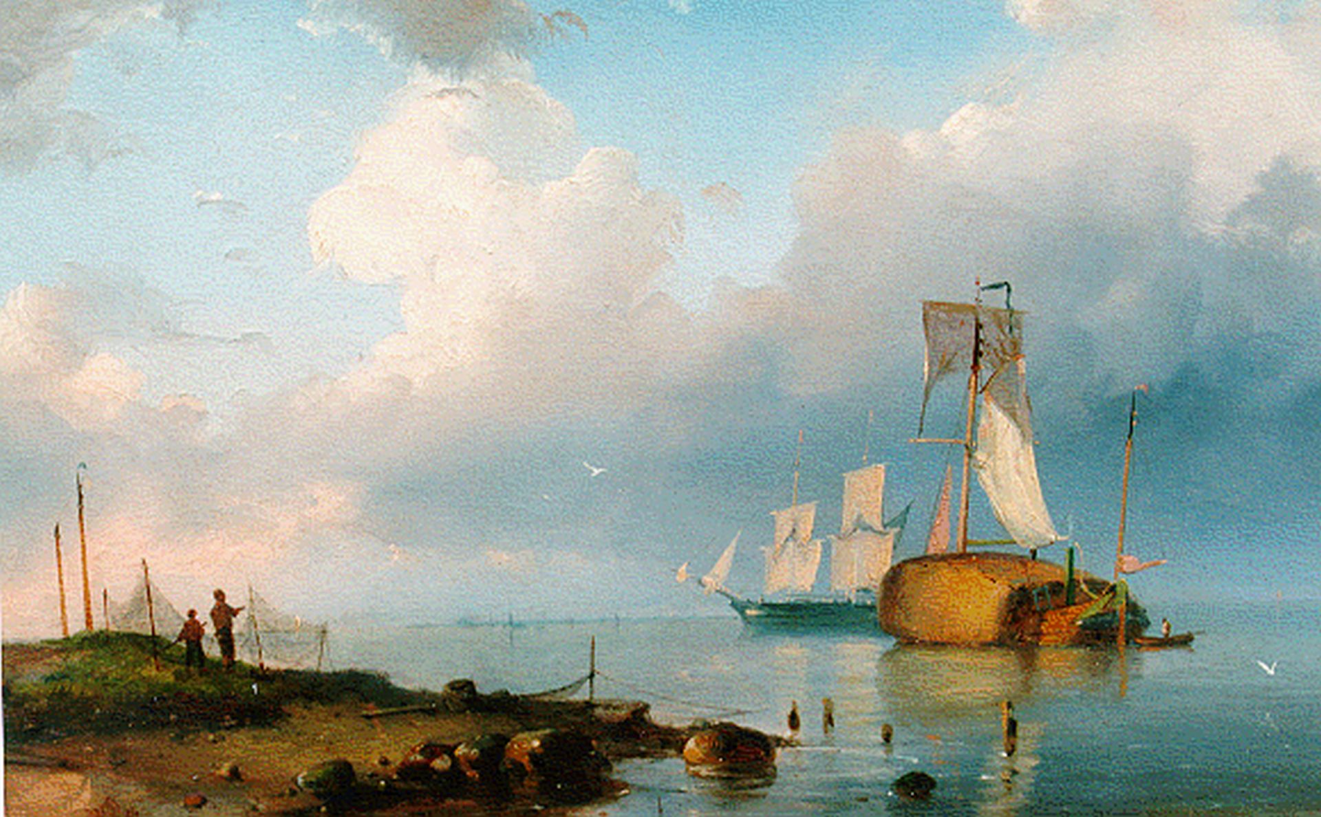 Pieter Cornelis Dommershuijzen Kunstwerk • Gemälde • zuvor zu verkaufen Shipping on the Zuiderzee