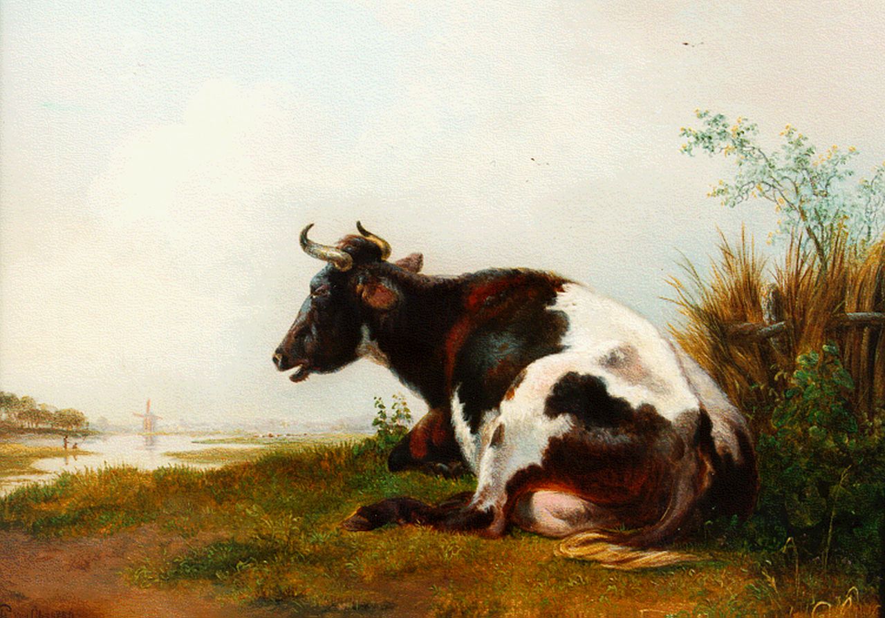 Pieter Gerardus van Os Kunstwerk • Gemälde • zuvor zu verkaufen A cow in a river landscape