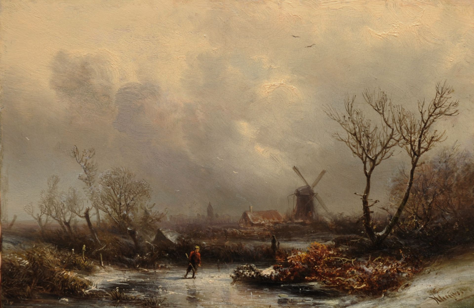 Pieter Kluyver Kunstwerk • Gemälde • zuvor zu verkaufen Skater in a winter landscape