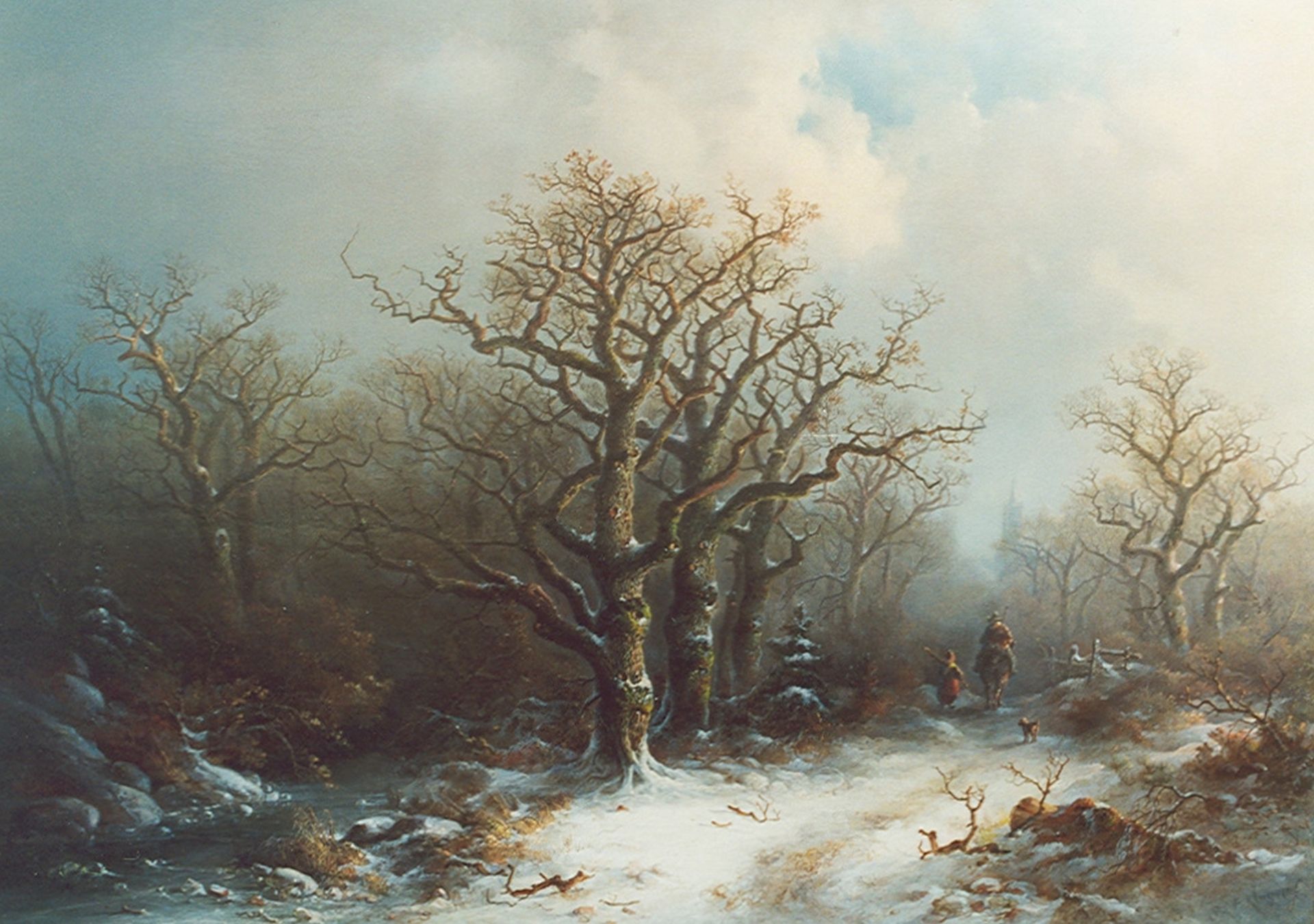Pieter Kluyver Kunstwerk • Gemälde • zuvor zu verkaufen Travelers in a winter landscape i.o.