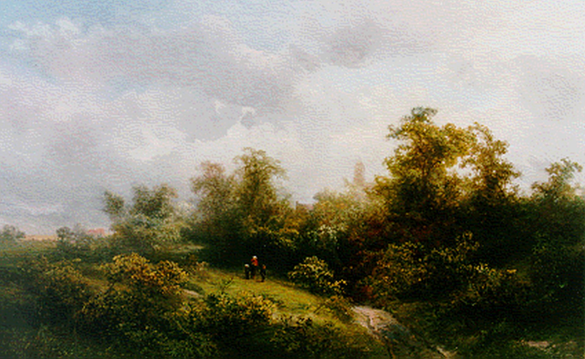 Pieter Kluyver ist ein typisch romantischer Maler. Er wurde 1816 in Amsterdam geboren und exposierte schon im Jahre 1838 mit fein ausgeführten und atmosphärreichen panoramischen Sommerlandschaften auf der jährlichen Tentoonstelling van Levende Meesters. Ausserdem malte Kluyver viele Winterlandschaften, Landschaften mit Vieh und auch Waldansichten. Seine Sommerlandschaften waren namentlich beliebt wegen der erzielten Sonnenlichtwirkungen.