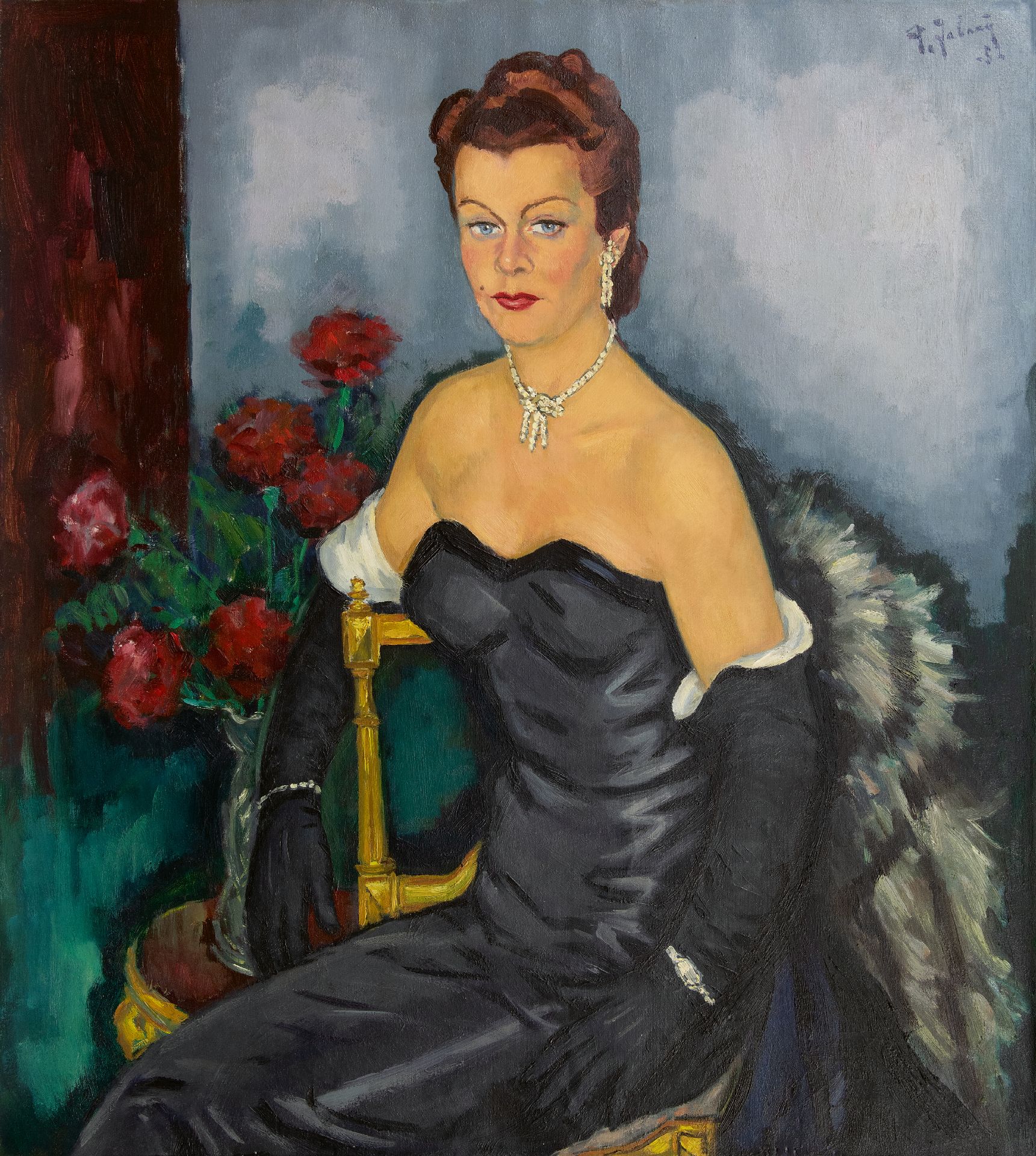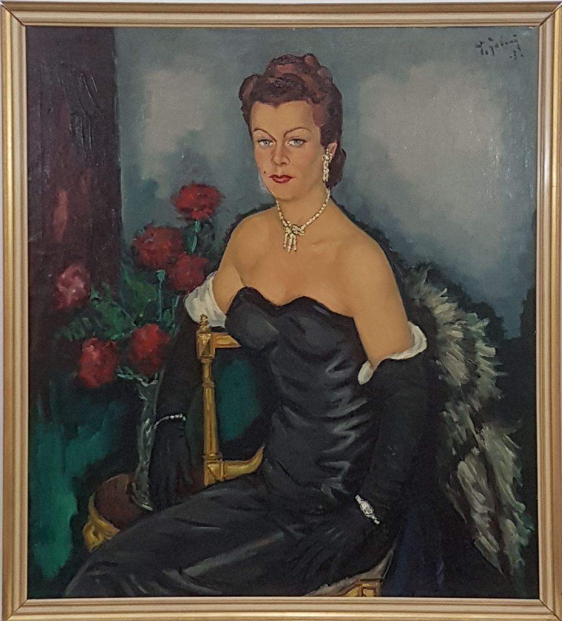 Pleun Jabaaij Kunstwerk • Gemälde • zuvor zu verkaufen Porträt einer jungen eleganten Dame in Abendkleid
