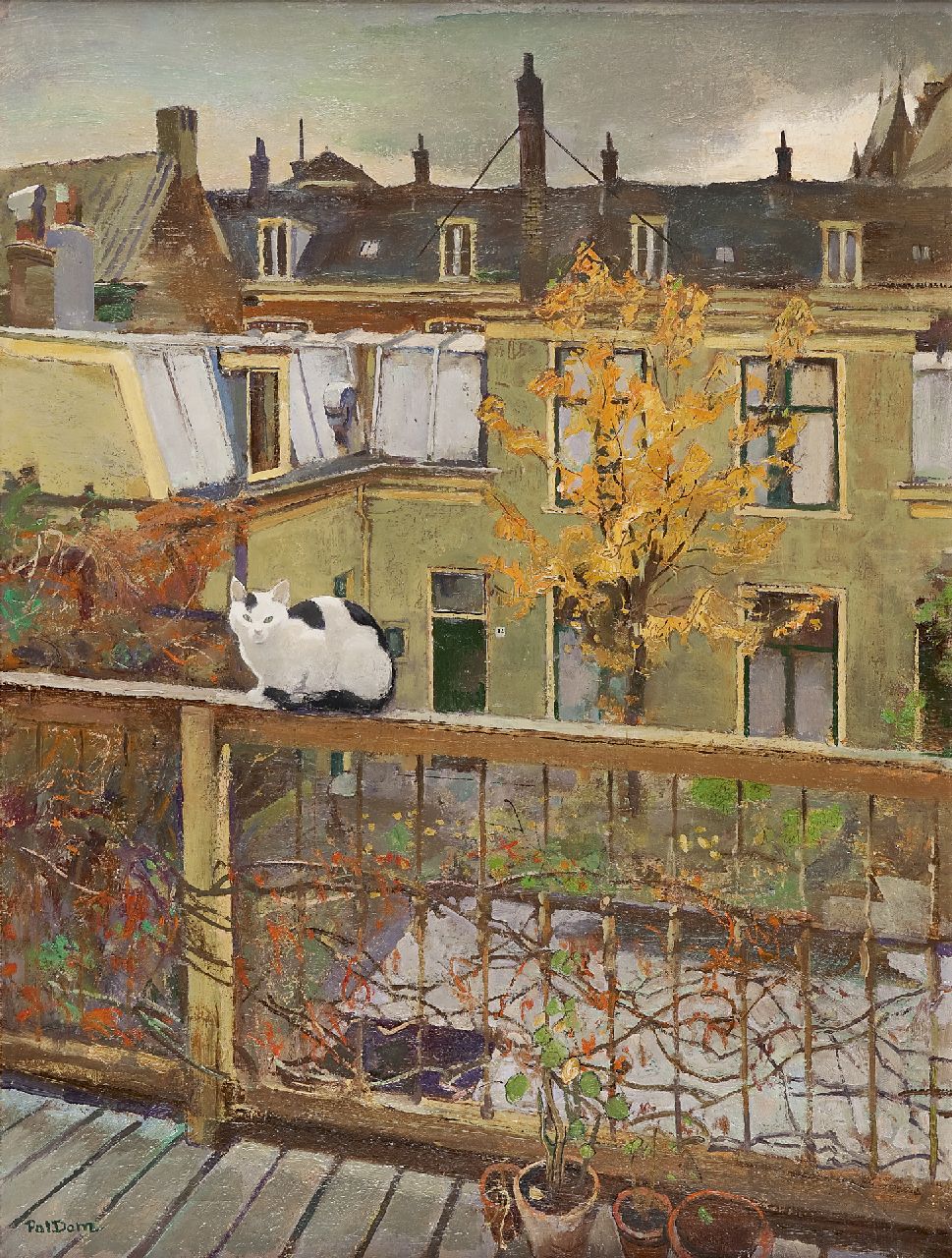Pol Dom Kunstwerk • Gemälde • zuvor zu verkaufen A cat on a balcony