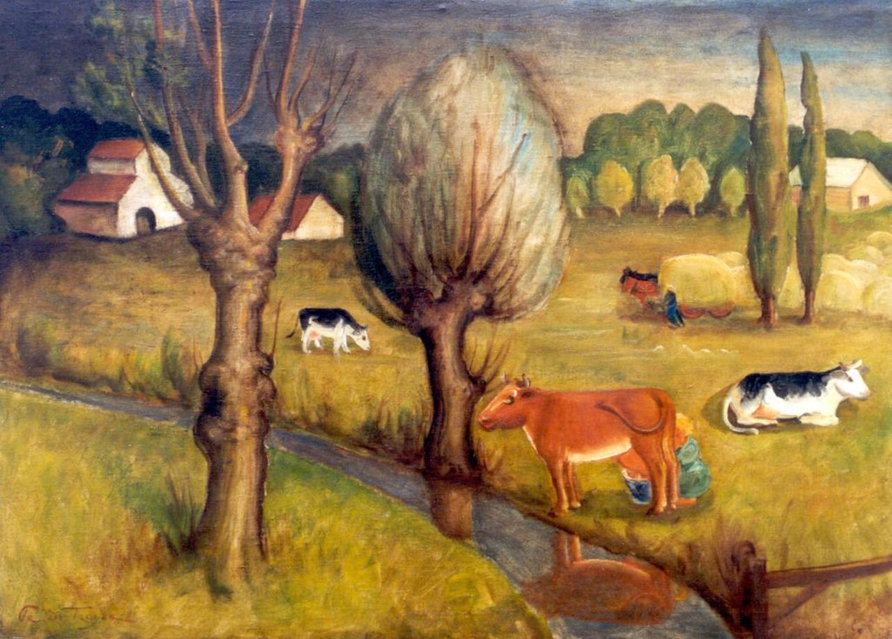 Prosper de Troyer Kunstwerk • Gemälde • zuvor zu verkaufen Milking the cows
