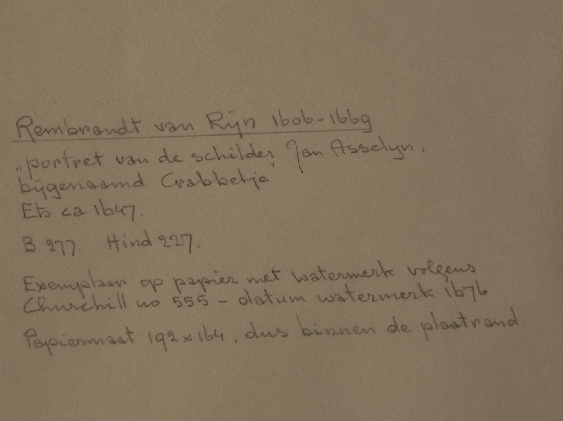 Rembrandt van Rijn gilt als einer der wichtigsten niederländischen Meister des 17. Jahrhunderts. Neben einem umfangreichen Oeuvre an Gemälden und Zeichnungen fertigte er rund 290 Radierungen an. Aufgrund seiner lockeren Linien und der umfassenden Beherrschung der Trockennadeltechnik wurde er zu Lebzeiten europaweit bekannt. Rembrandts Originalätzplatten wurden nach seinem Tod gehandelt. Dies führte zu geringfügigen Änderungen in der Platte, die mit der Bezeichnung 2., 3., 4. oder 5. Zustand aufgeführt sind.