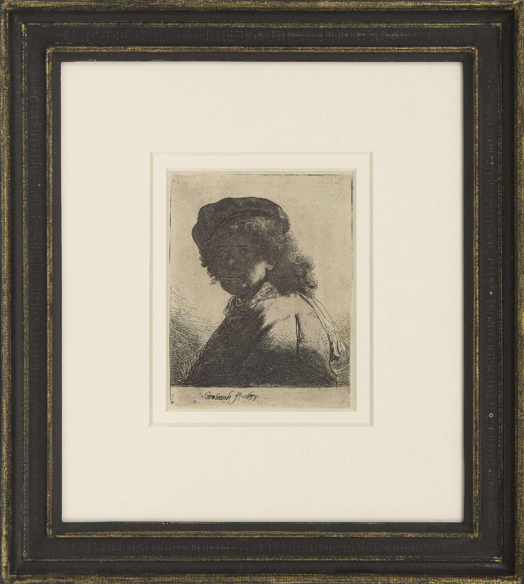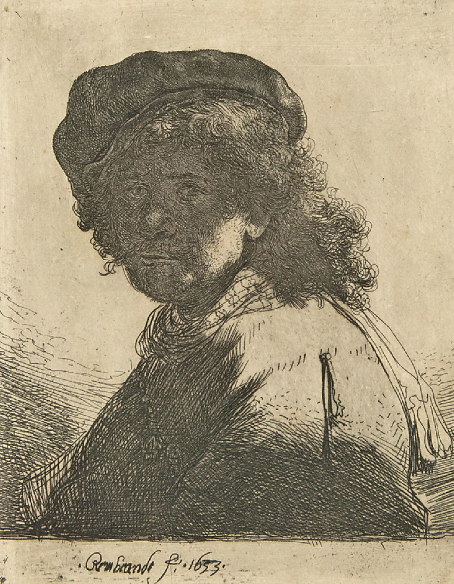 Rembrandt Kunstwerk • Grafik • zuvor zu verkaufen Selbstbildnis mit Barett und Halstuch