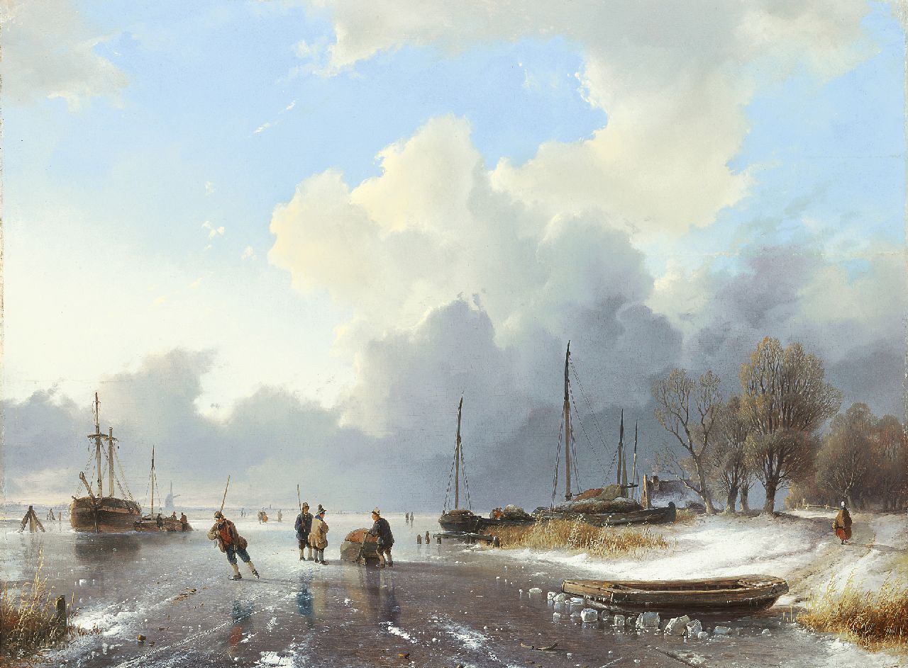 Remigius Adrianus Haanen Kunstwerk • Gemälde • zuvor zu verkaufen A winter scene with skaters on ice