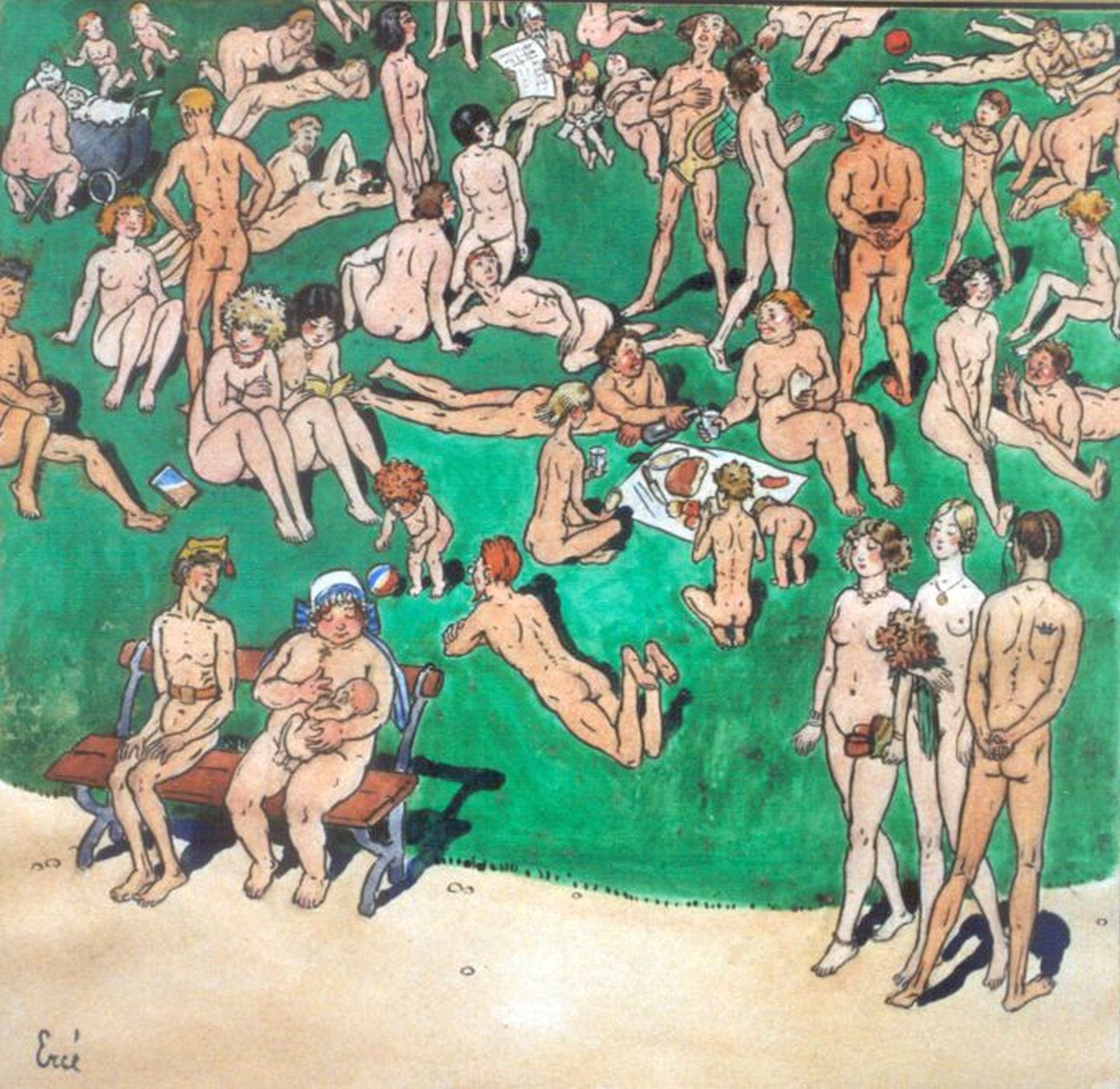 René Choprix Kunstwerk • Aquarell • Zeichnung • zuvor zu verkaufen A parc in Brussels; a nudist's fantasy