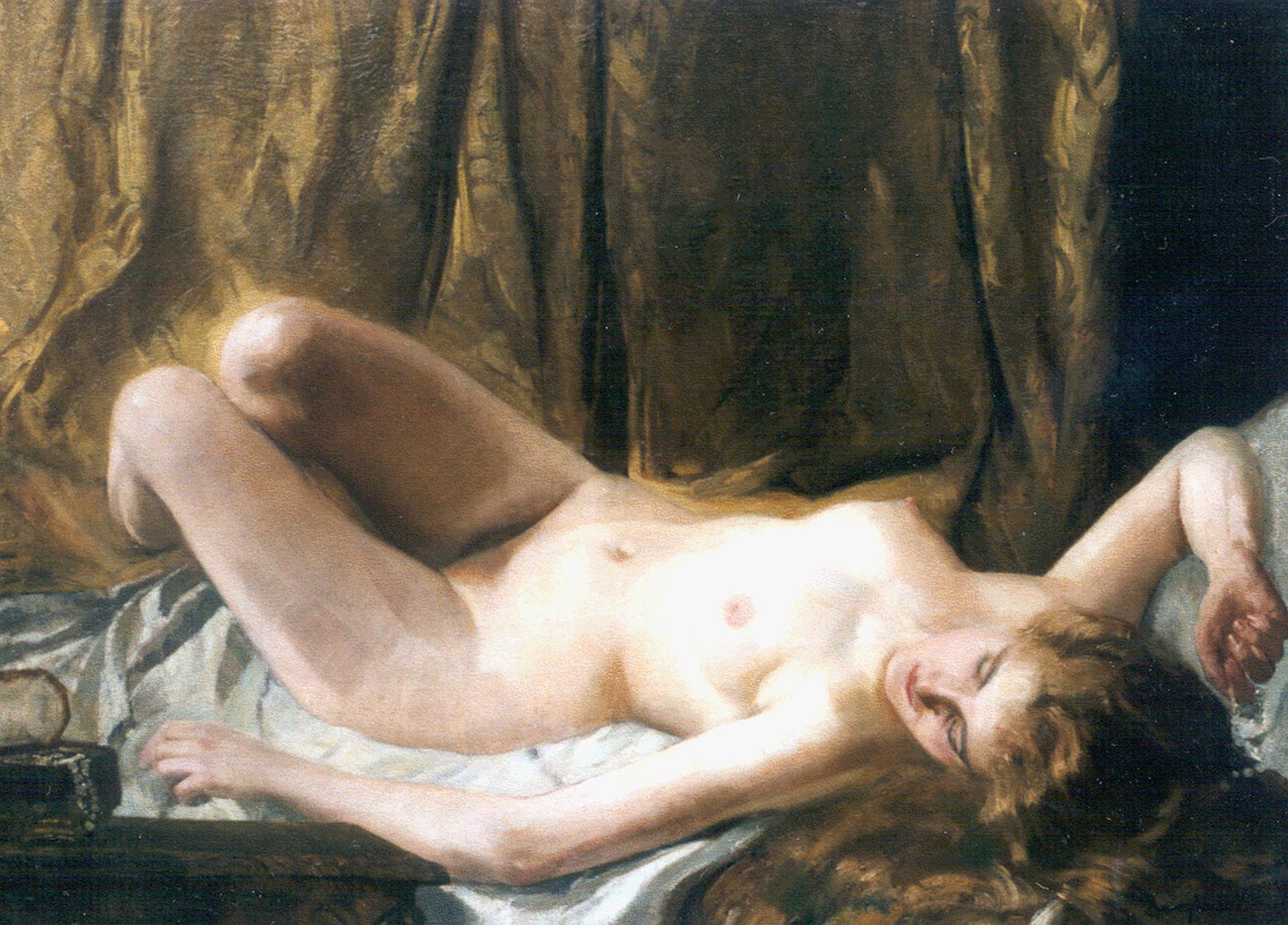 Rezso of Rodolphe Zsombolya-Burghart Kunstwerk • Gemälde • zuvor zu verkaufen A reclining nude