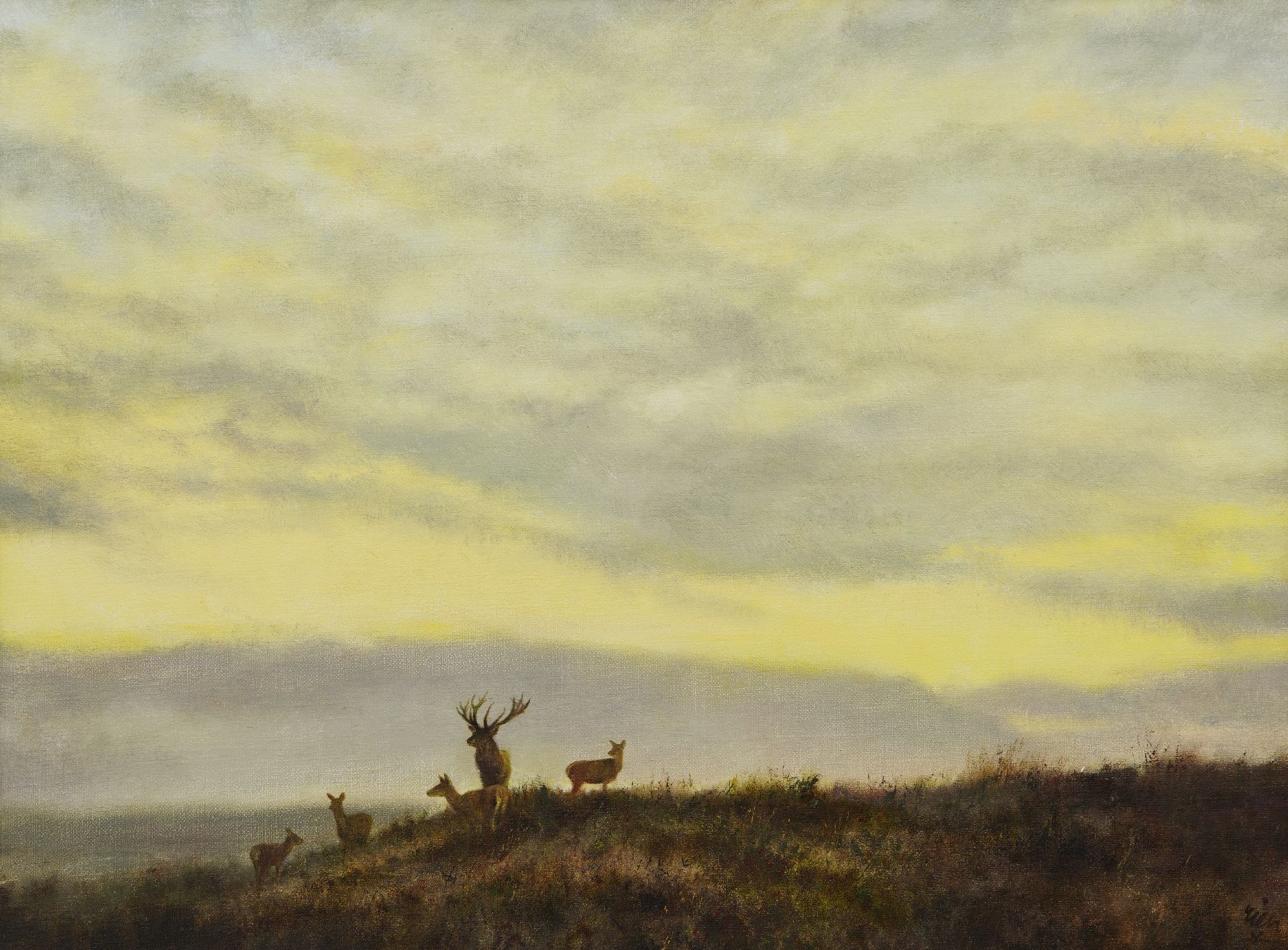 Rien Poortvliet Kunstwerk • Gemälde • zuvor zu verkaufen Hirsche in einer Heidelandschaft