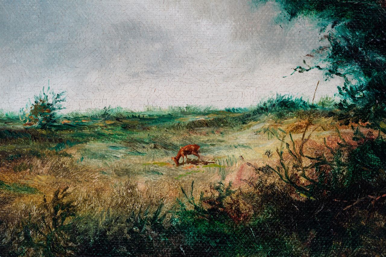 Rien Poortvliet Kunstwerk • Gemälde • zuvor zu verkaufen Landschaft mit grasenden Rehen