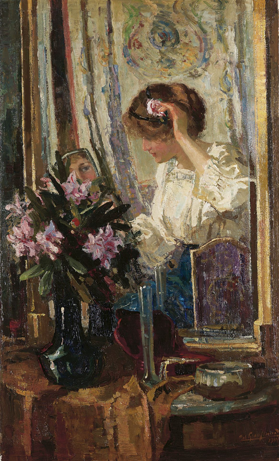 Graafland R.A.A.J.  | Robert Archibald Antonius Joan 'Rob' Graafland, In the boudoir, Öl auf Leinwand 128,9 x 77,3 cm, signed l.r. und dated 1914