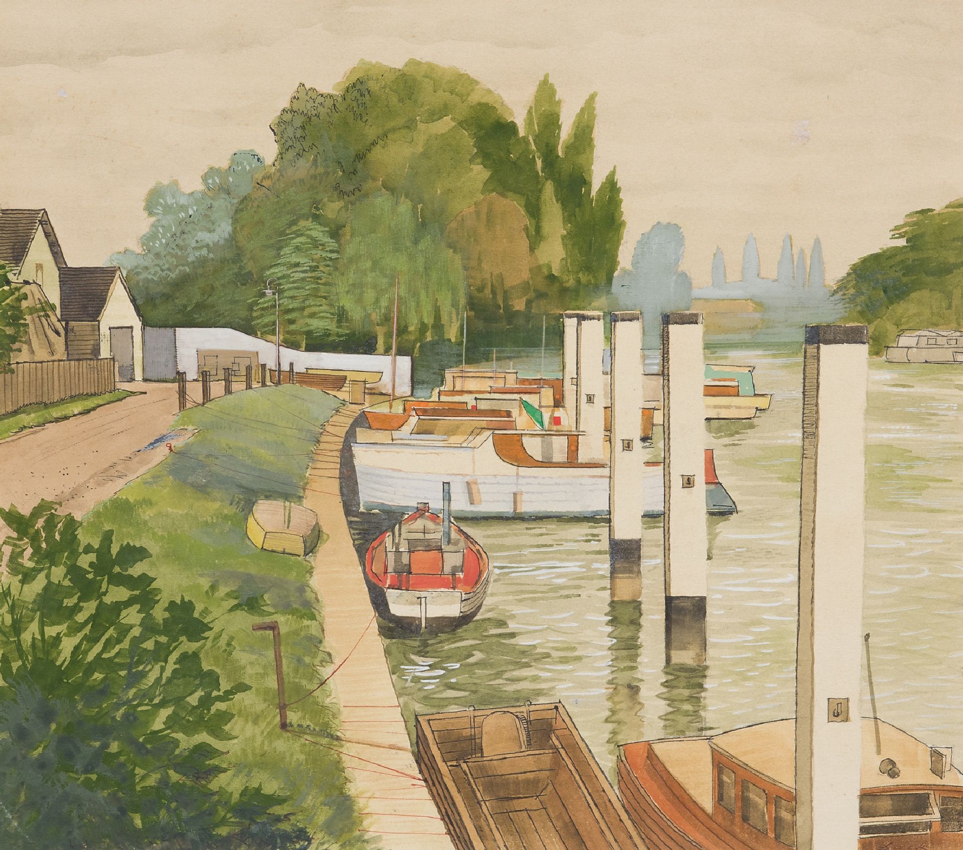 Robert Trenaman Back Kunstwerk • Aquarell • Zeichnung • zu verkaufen Das 'Shepperton Lock' in der Themse