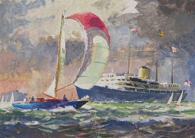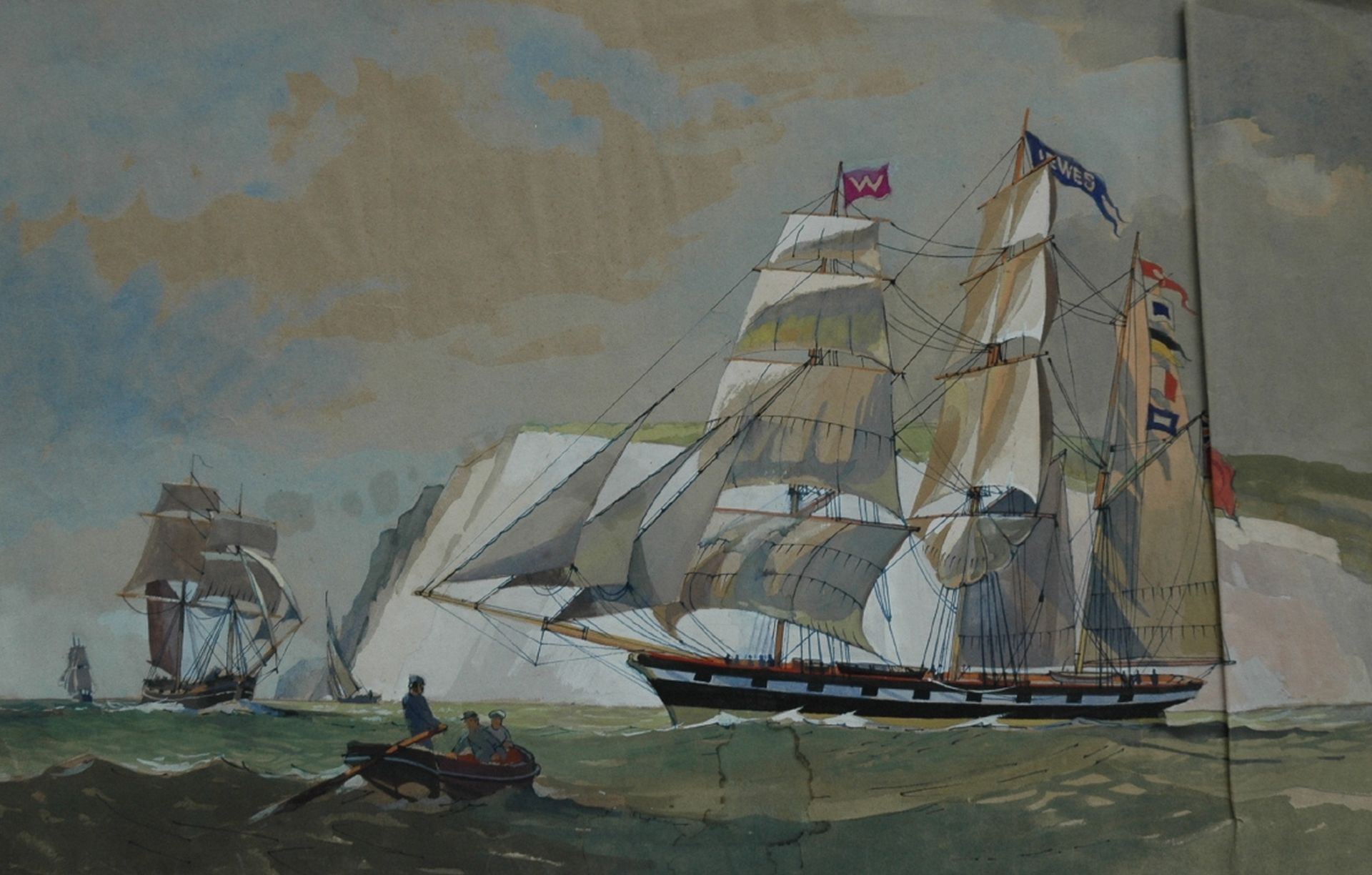 Robert Trenaman Back Kunstwerk • Aquarell • Zeichnung • zuvor zu verkaufen Sailing boat off the English shore